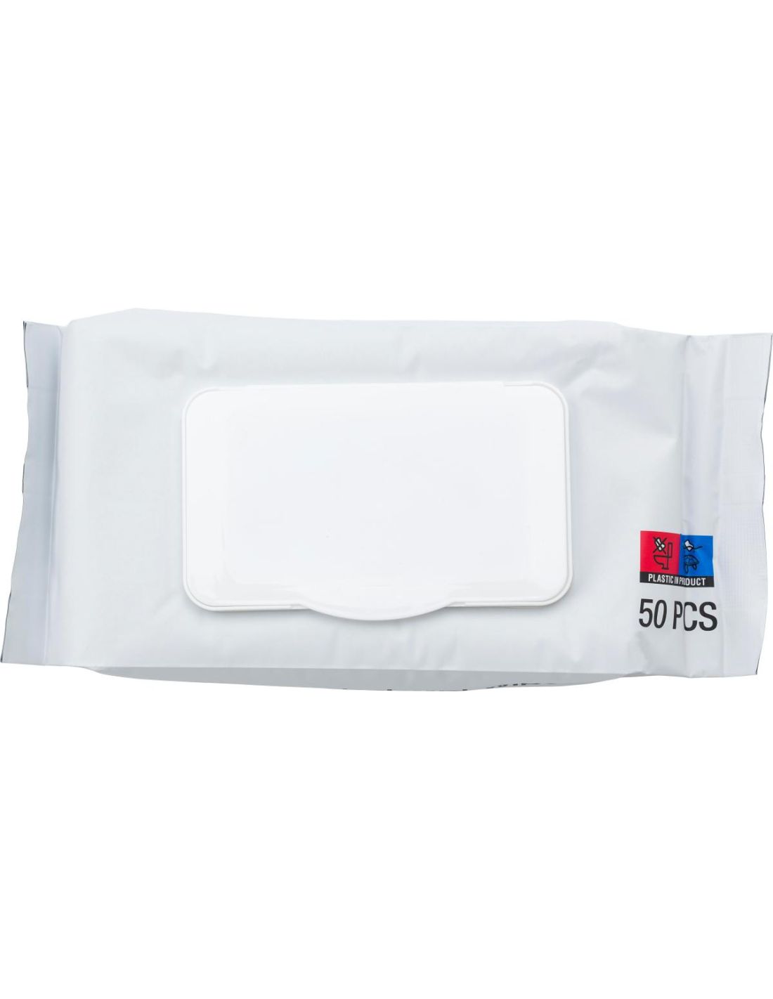 Bolsa sellada con 50 toallitas desinfectantes, impregnadas en alcohol (75%). Válido hasta el 30 de abril de 2024