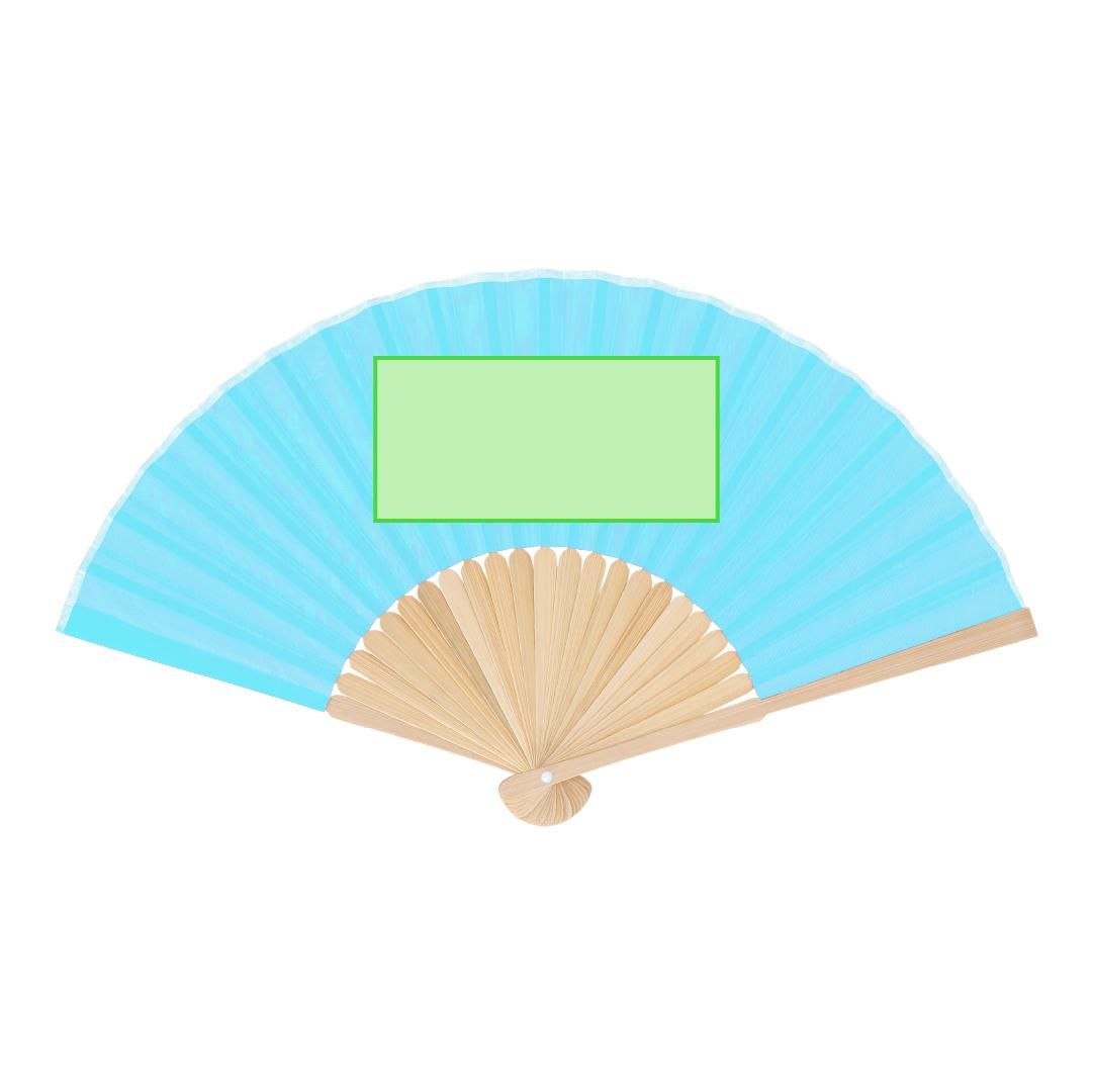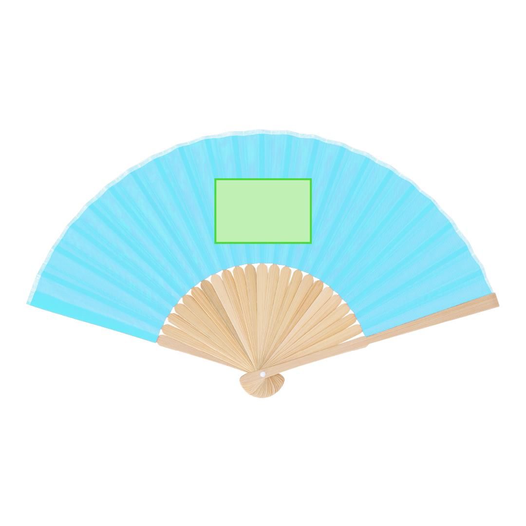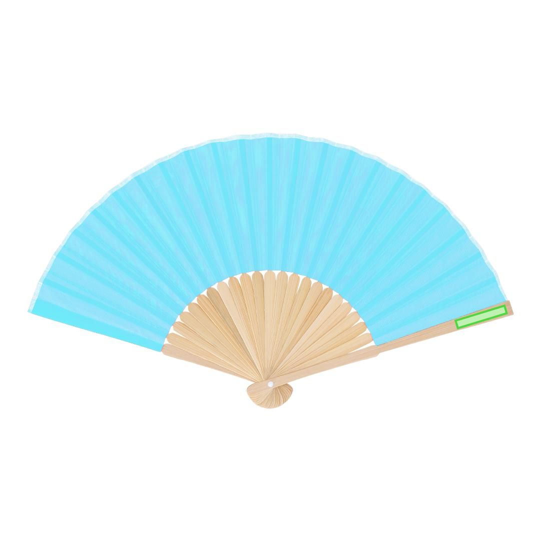 Abanico con varillas fabricadas en resistente bambú. Tela en resistente poliéster 190T.