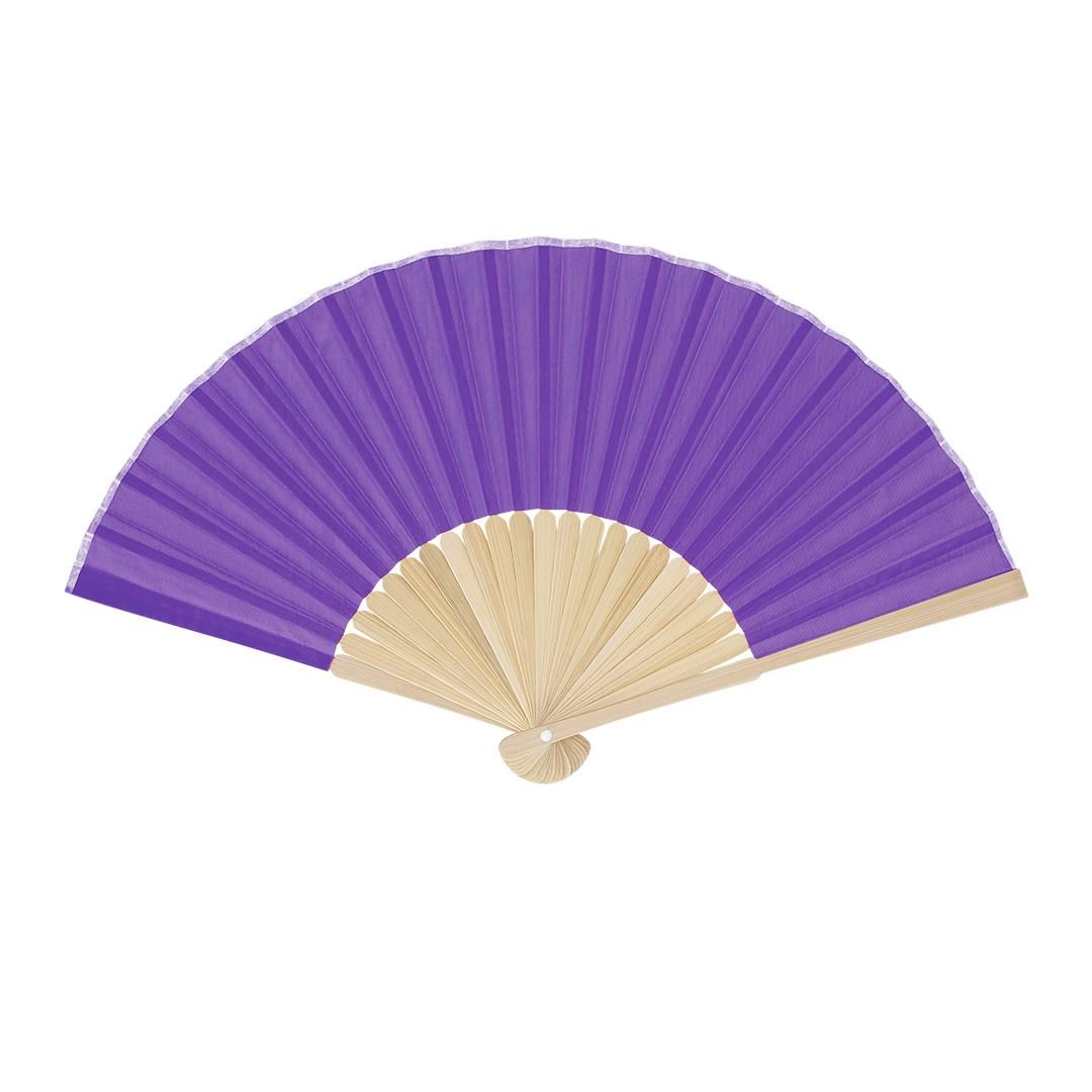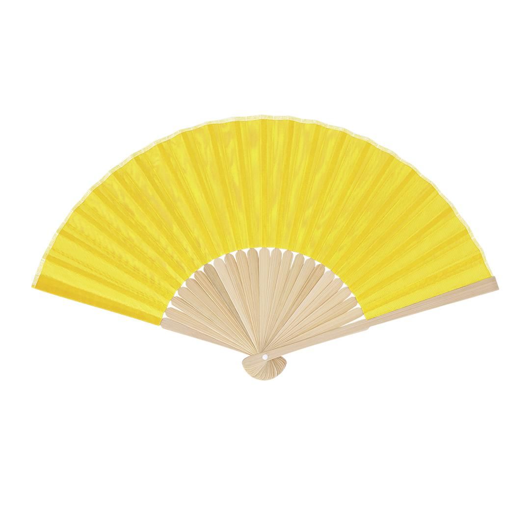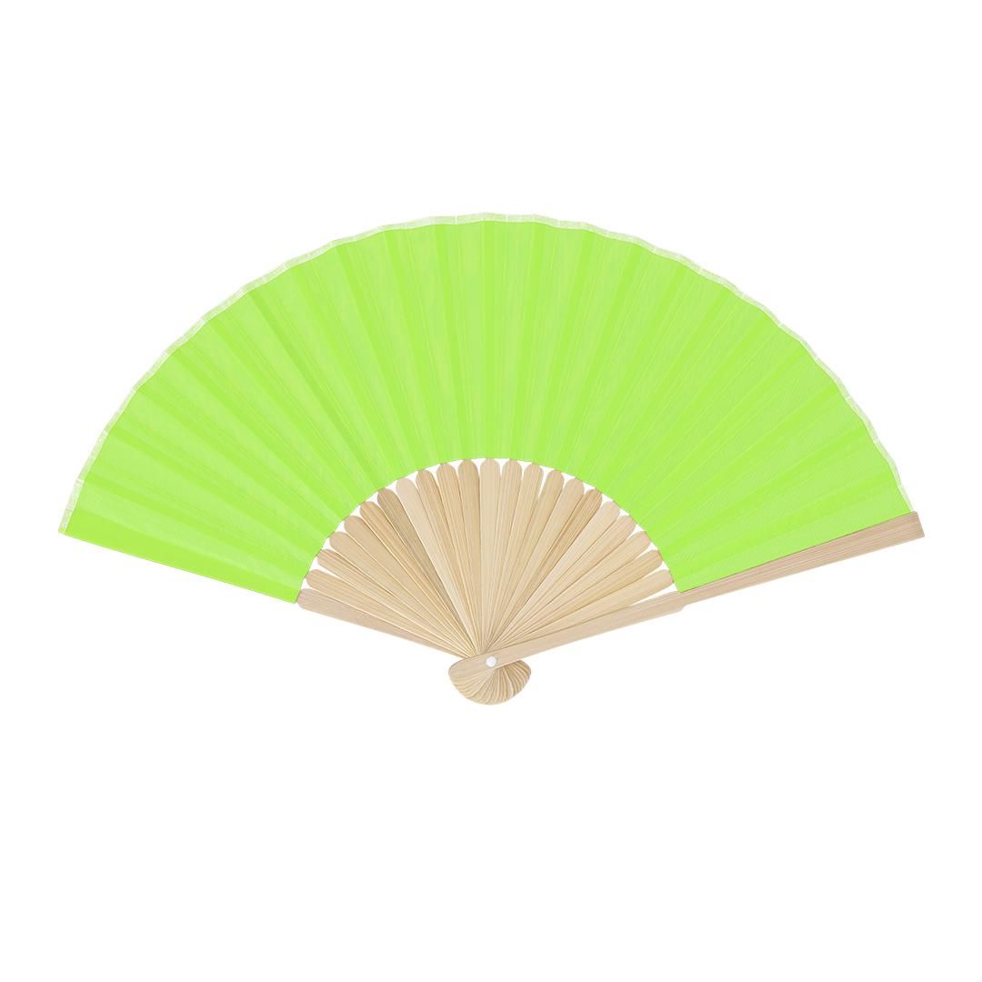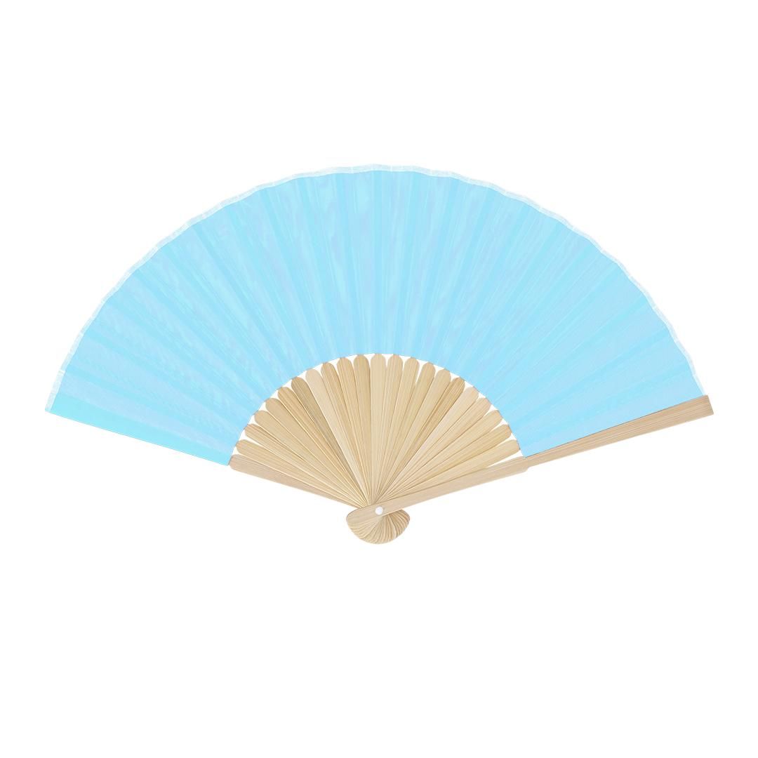 Abanico con varillas fabricadas en resistente bambú. Tela en resistente poliéster 190T.