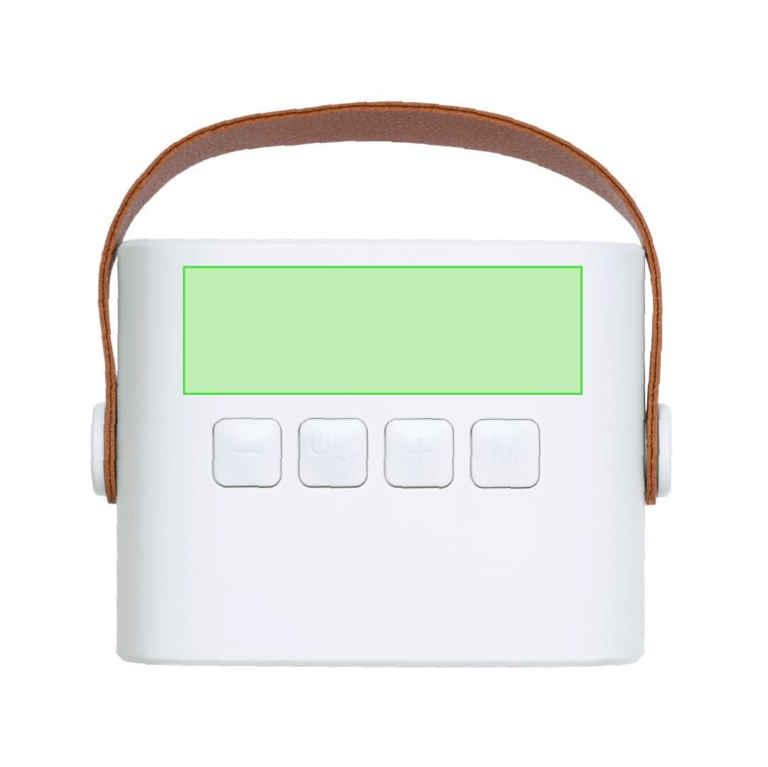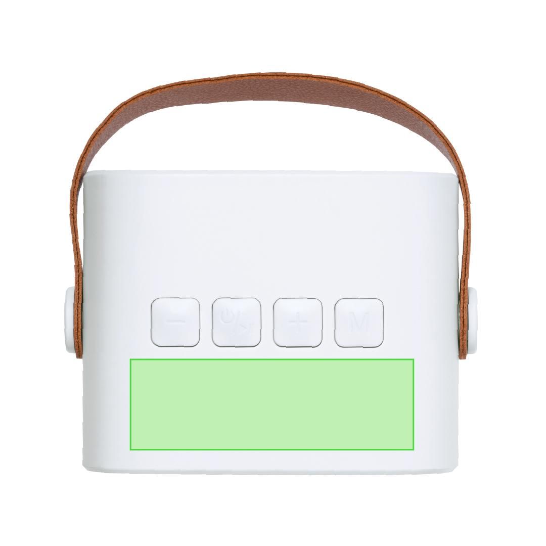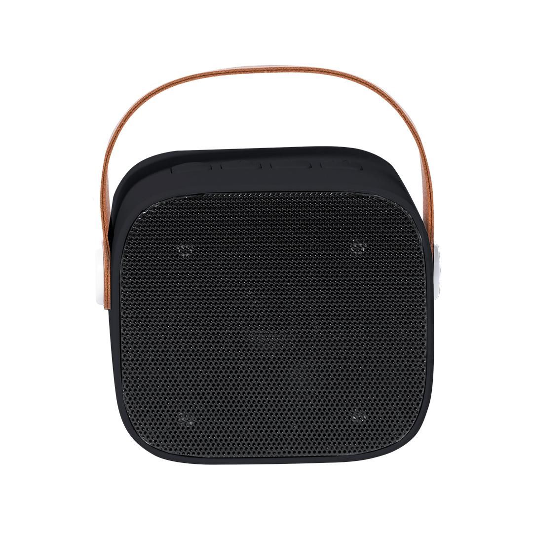Altavoz estéreo de diseño Bluetooth® de 5W en ABS reciclado (RABS). Con conexión Bluetooth® 5.3 y 5W de potencia, y batería de 1200 mAh a través de cable USB-Tipo C incluido. Con botón de ON/OFF y controles de volumen. Dispone de una asa de transporte con diseño retro. Incluye distintivo logotipo de RABS.