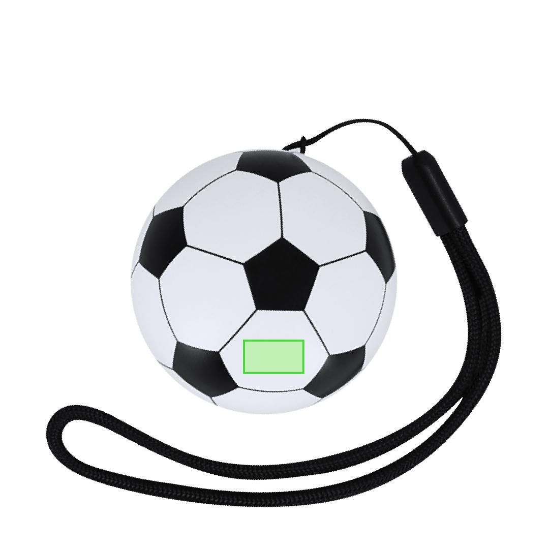 Auriculares con estuche de diseño de balón de fútbol. Con conexión Bluetooth® 5.3 y 3W de potencia, y batería de 200 mAh a través de cable USB-Tipo C incluido. Incluye asa de sujeción para cómodo transporte.