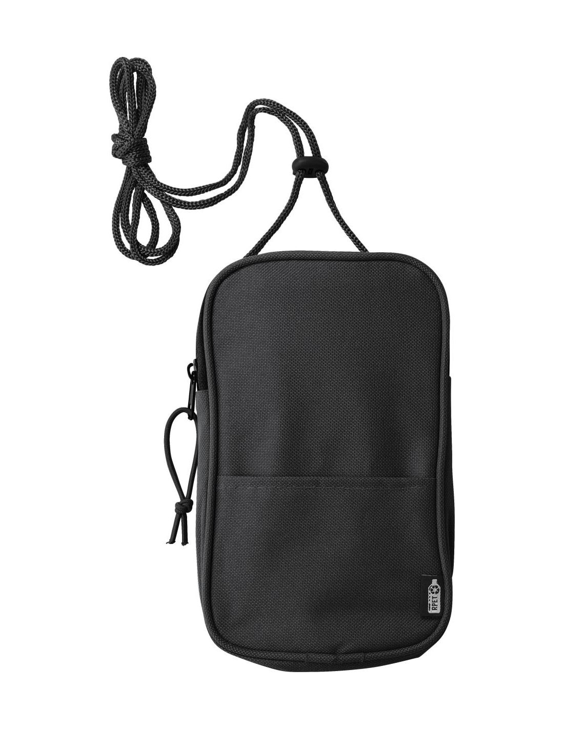 Bolsita bandolera de poliéster rPET (600D) para llevar colgada al cuello, al hombro o bien ajustada a la muñeca mediante un cordón. Tiene un compartimento grande con cremallera y banda elástica y un bolsillo insertado. Con etiqueta rPET.
