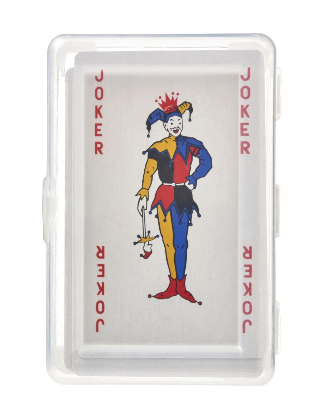 Baraja francesa clásica, con 54 cartas presentadas en una caja de PET transparente.