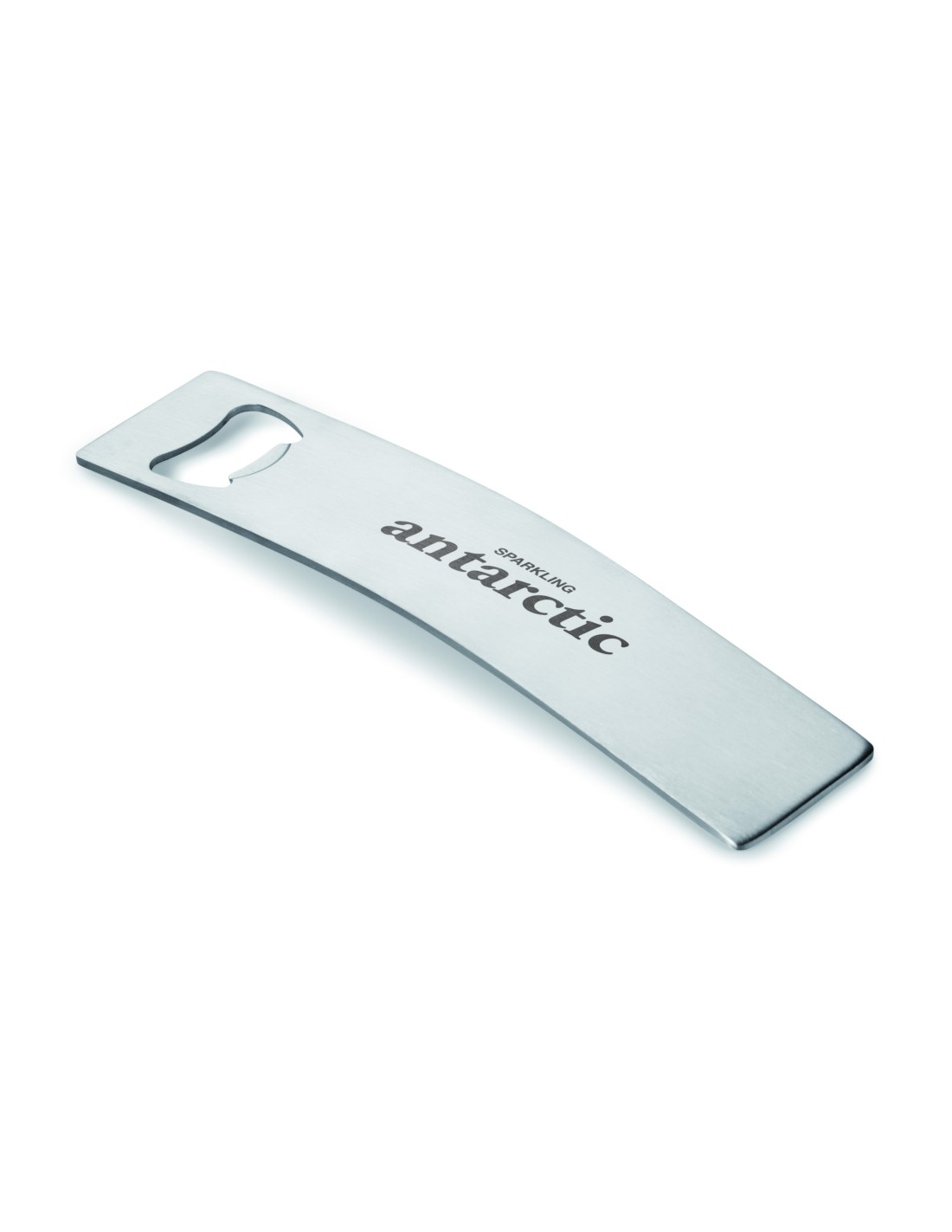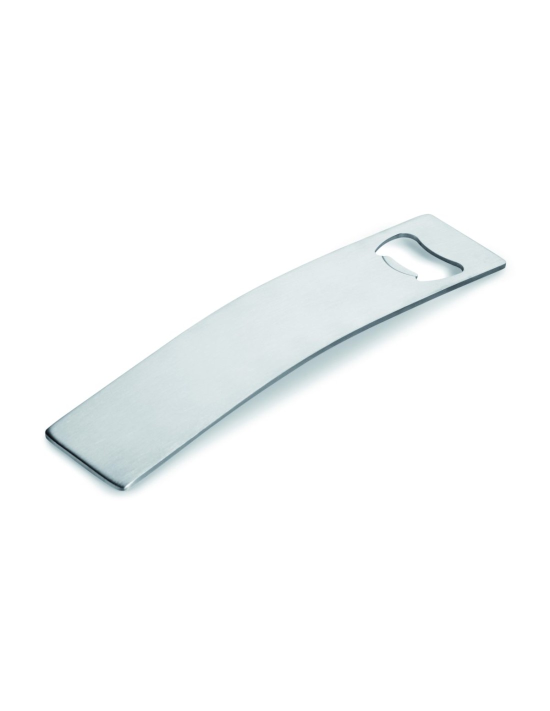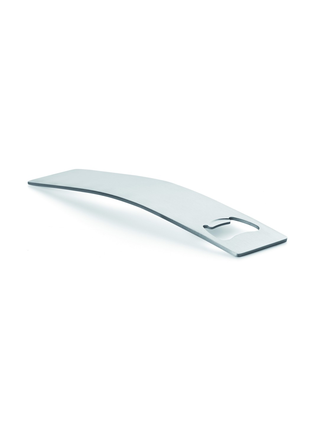 Elegante abrebotellas curvado realizado en acero inoxidable.