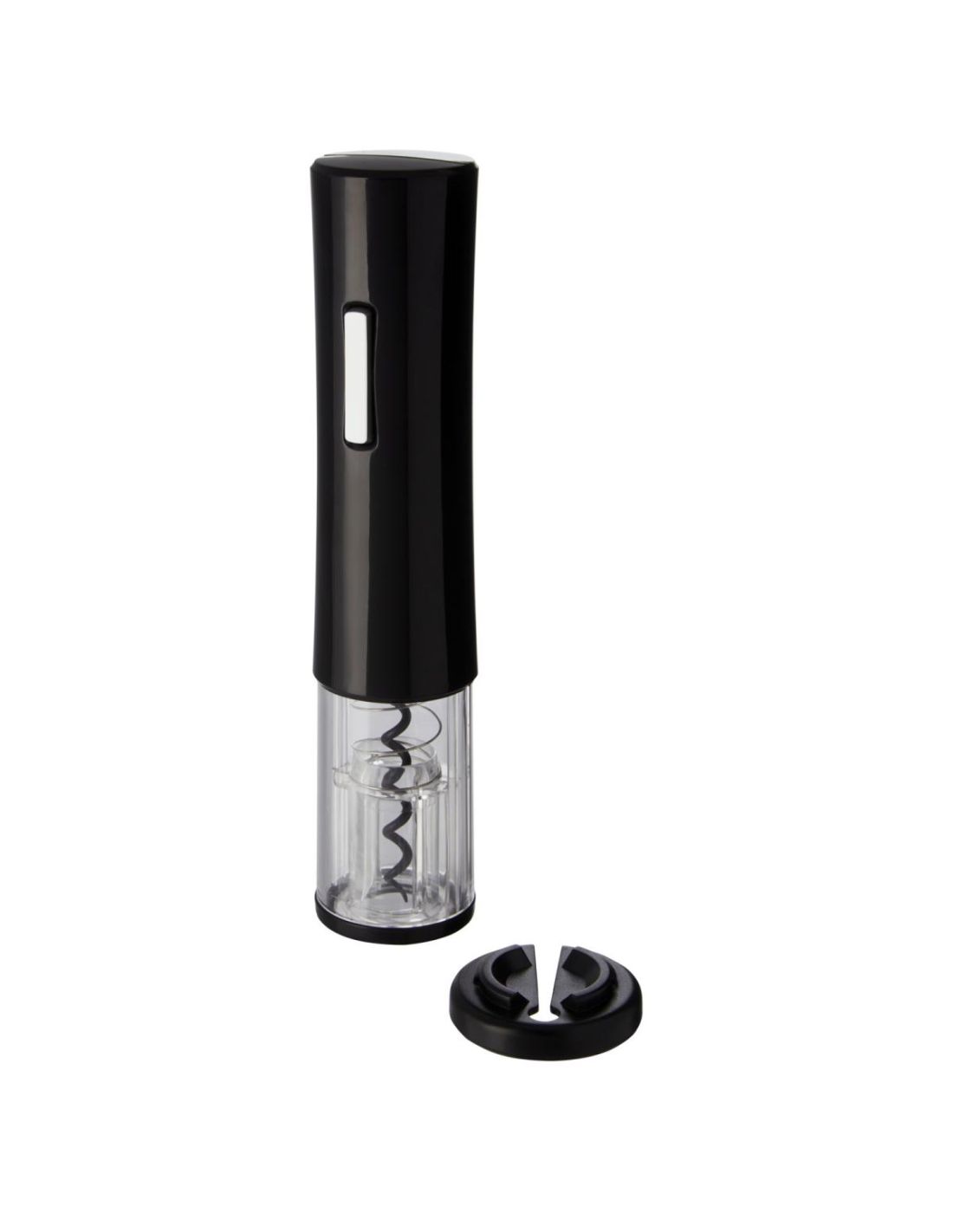 Abridor eléctrico para botellas de vino que incorpora un cortacápsulas. Funciona con 4 pilas AA (no incluidas).