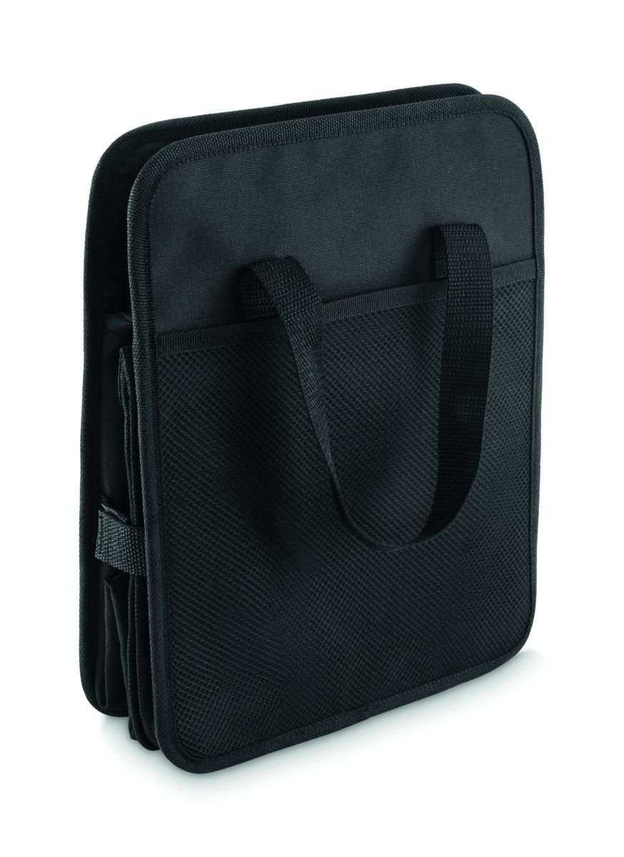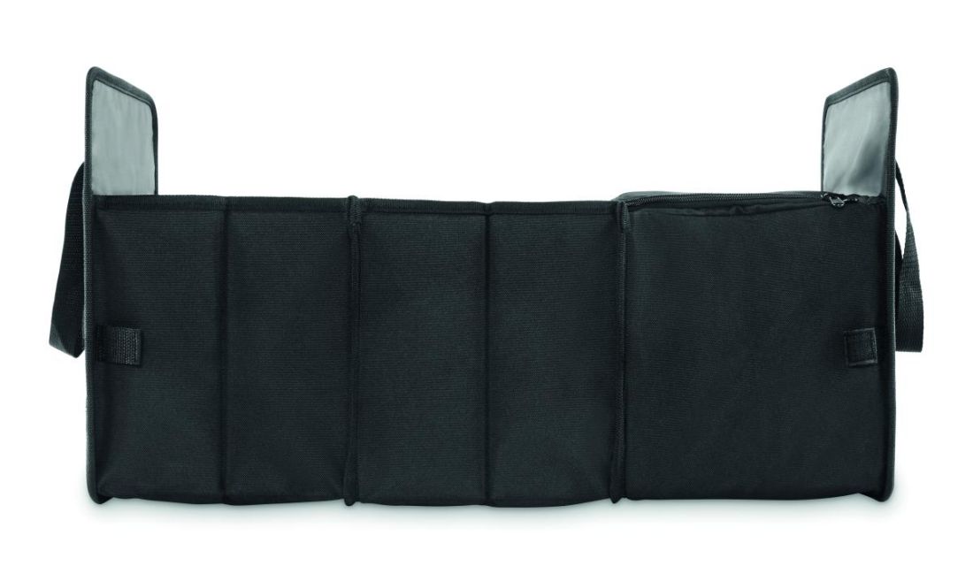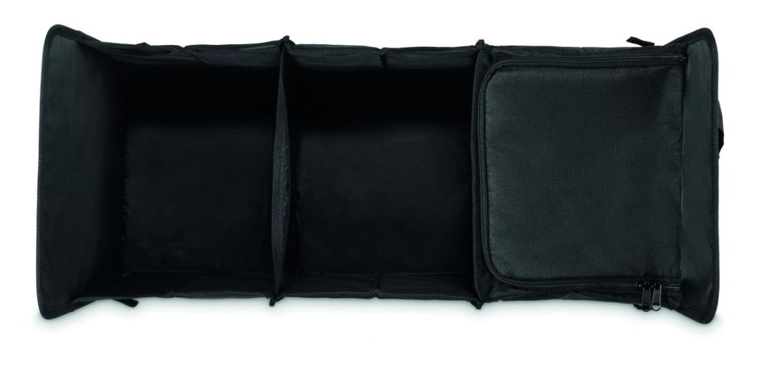 Organizador de coche plegable de poliéster RPET 600D con 3 compartimentos, uno de ellos nevera.