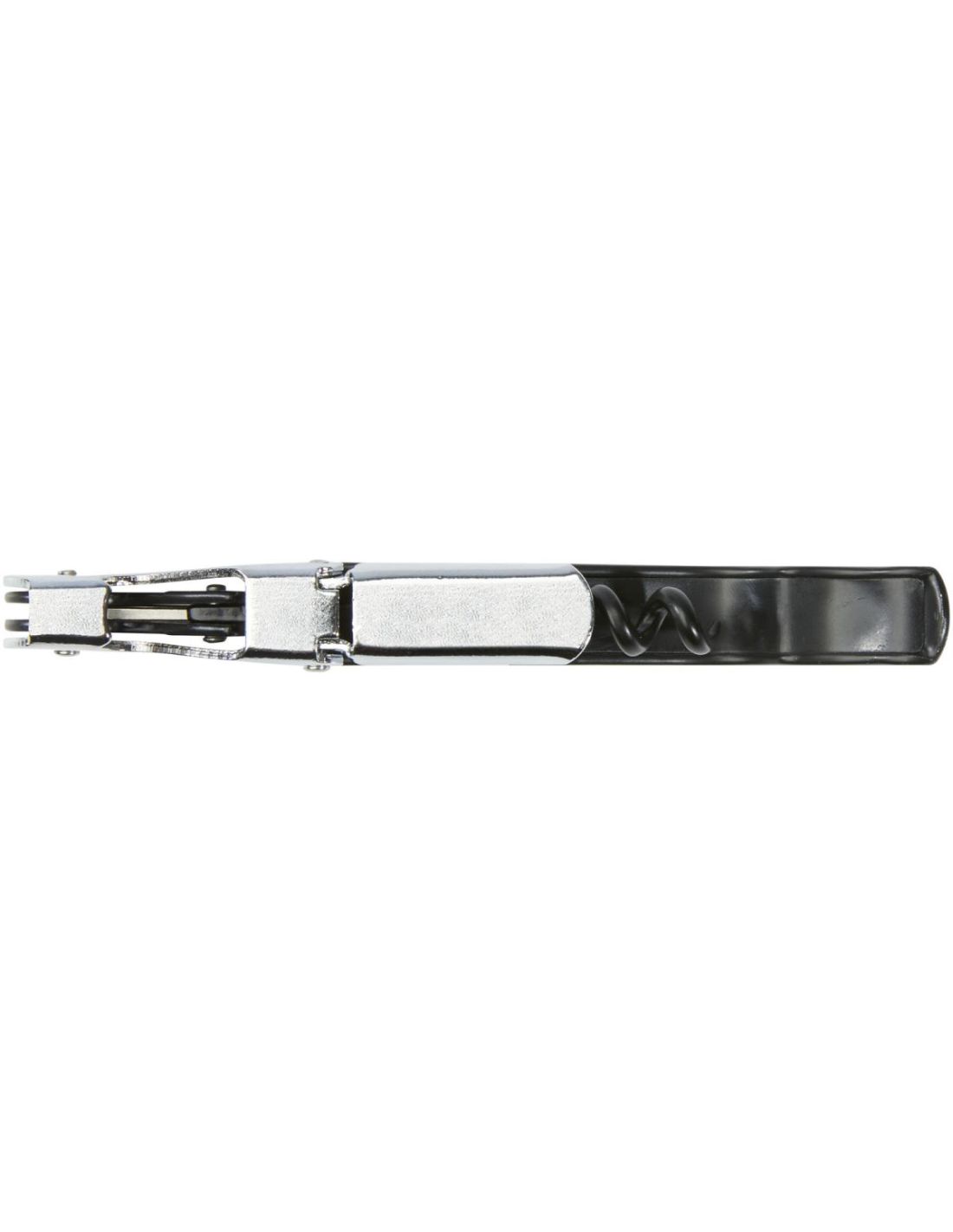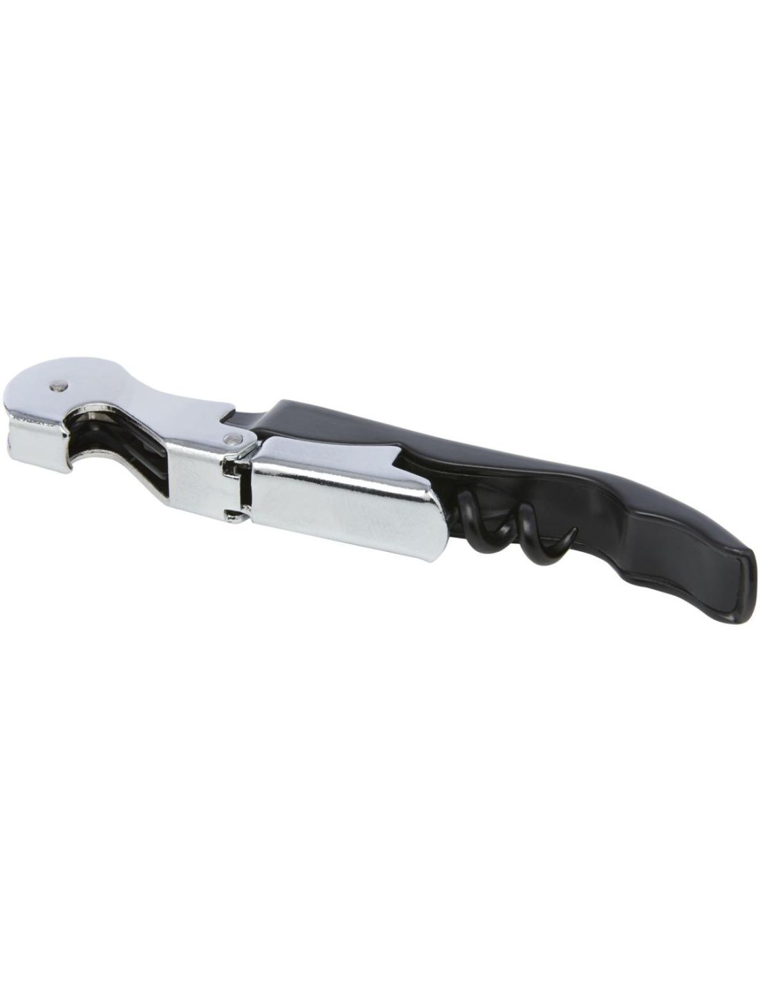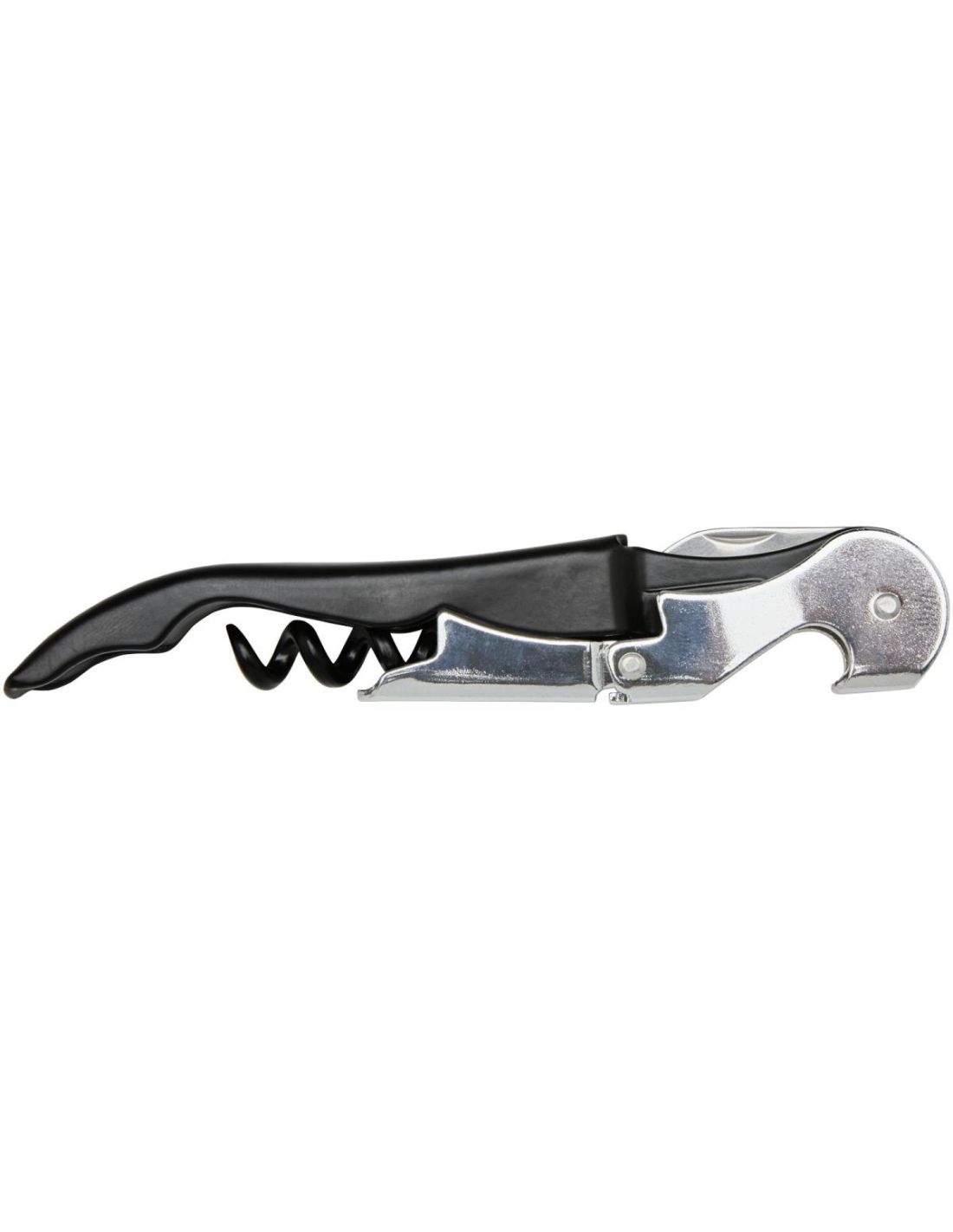 Un abridor de camarero de acero inoxidable con cuerpo colorido, sacacorchos, cortacápsulas y abrebotellas. Gracias a su estructura de dos tiempos es fácil sacar el corcho de la botella.