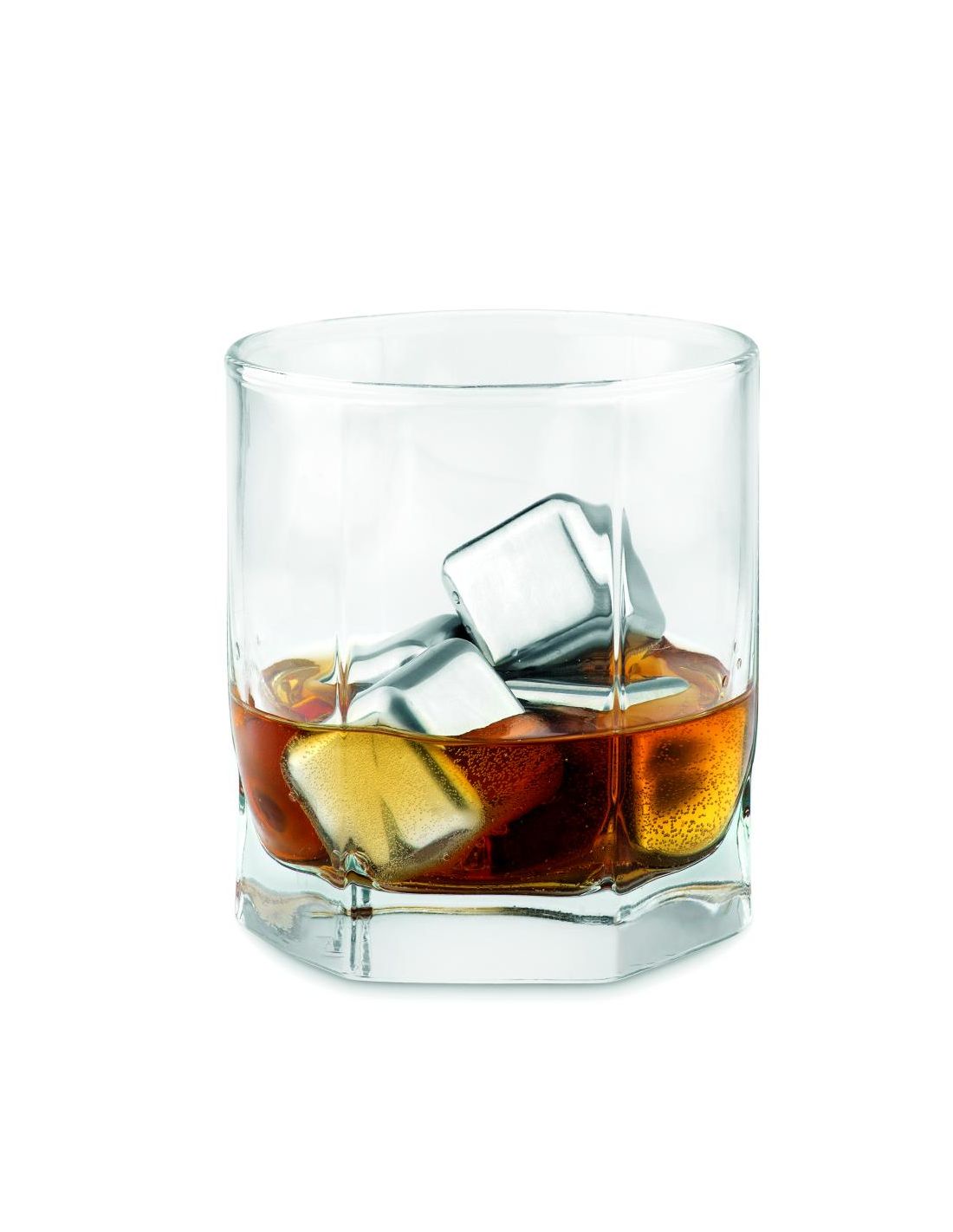 Set de 4 cubitos de hielo reutilizables de acero inoxidable en funda de terciopelo.