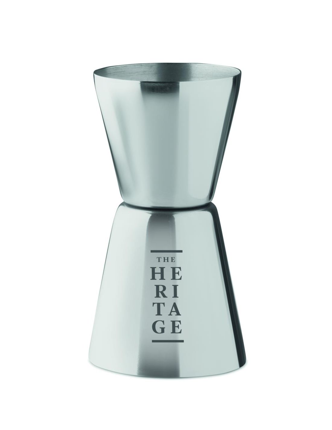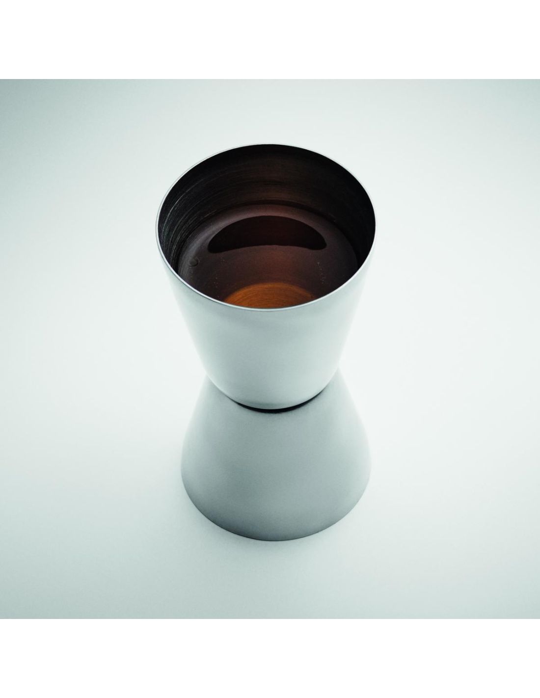 Vaso medidor de acero inoxidable de doble uso. Capacidad: 25 y 40 ml.