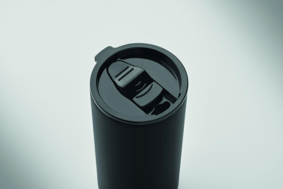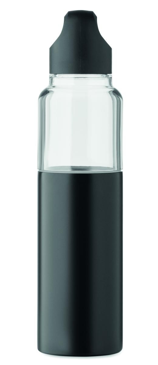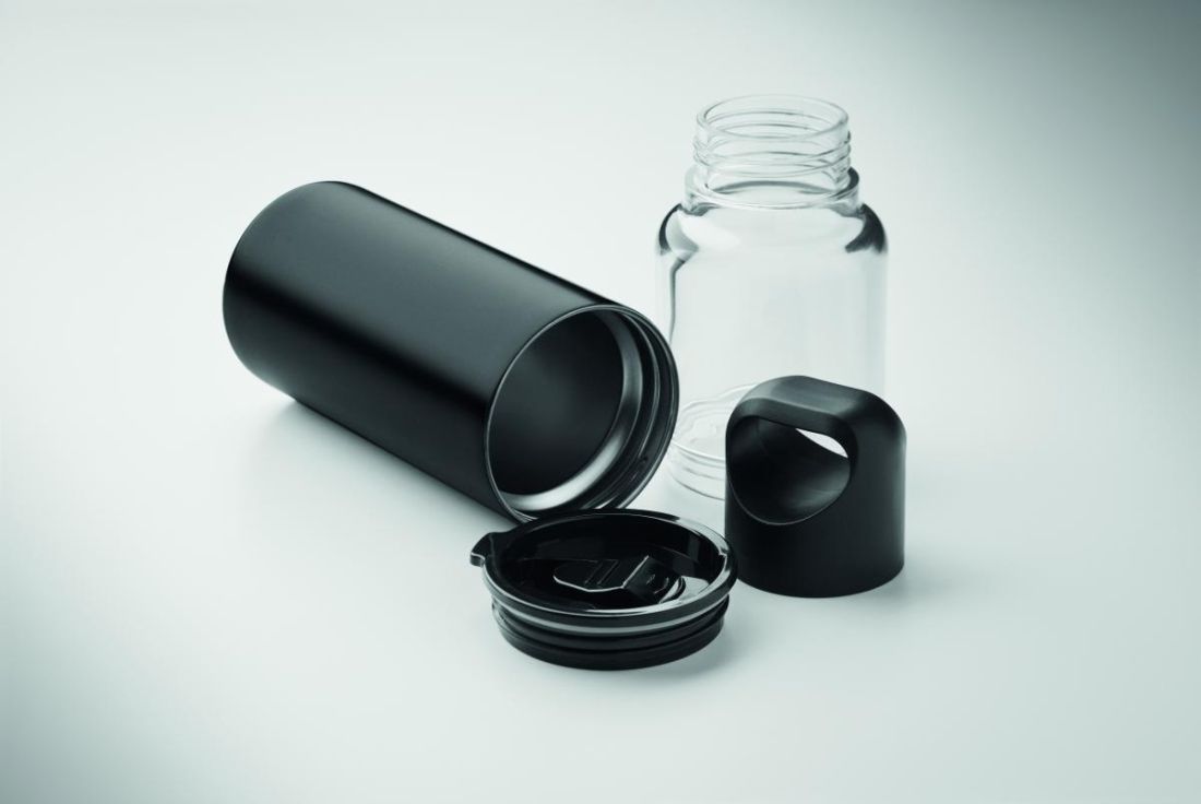 Botella 2 en 1 de Tritan y vaso de doble pared de acero inoxidable reciclado (90% reciclado y 10% de acero inoxidable). 2 tapas de material PP. Capacidad total 610 ml, sólo vaso 350 ml