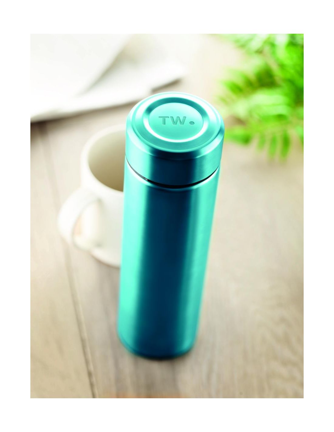 Botella de acero inoxidable de doble pared aislado al vacío con infusor de té. Capacidad 425 ml. Anti fugas.