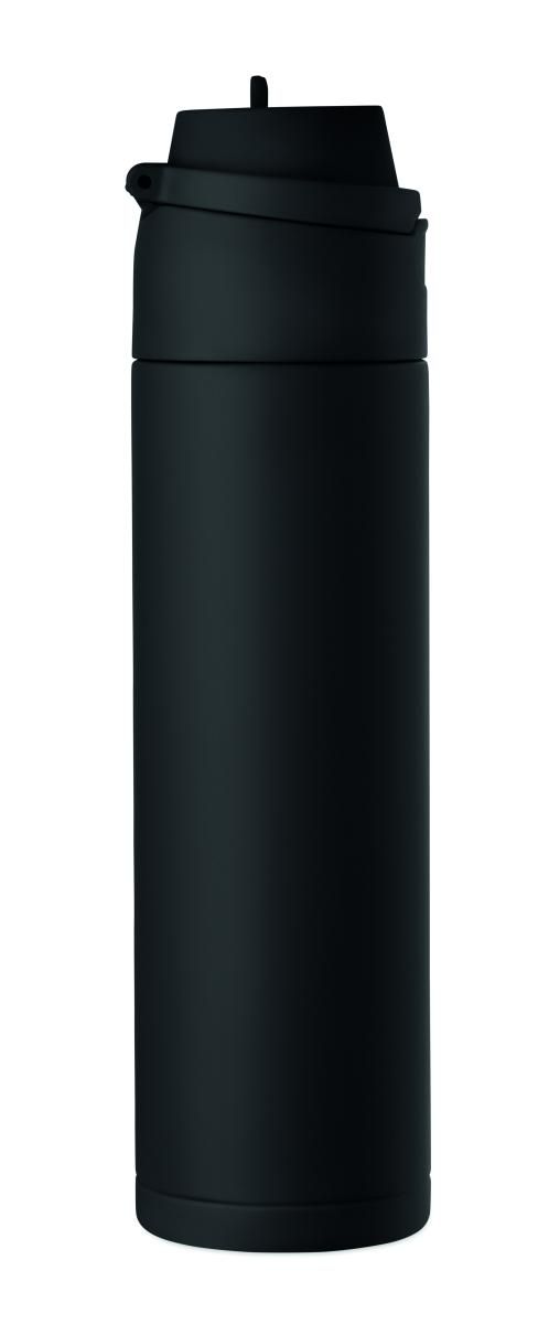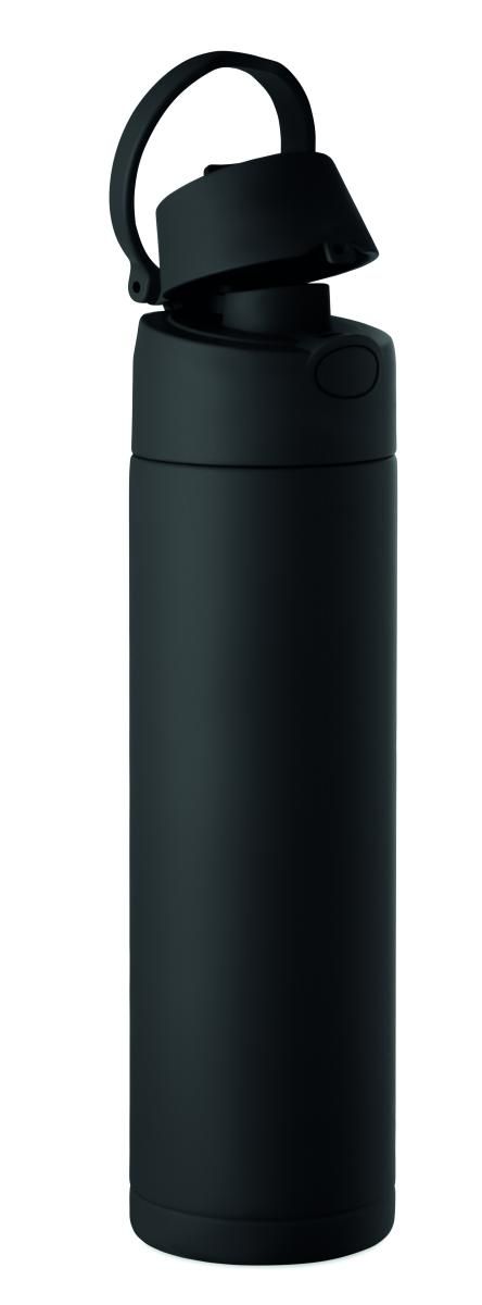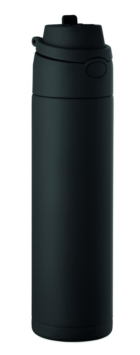 Botella de acero inoxidable reciclado de pared simple (90% de acero inoxidable reciclado y 10% de acero inoxidable). Con pajita 2 en 1 y tapa de PP con asa. Sin fugas. Capacidad: 650 ml.