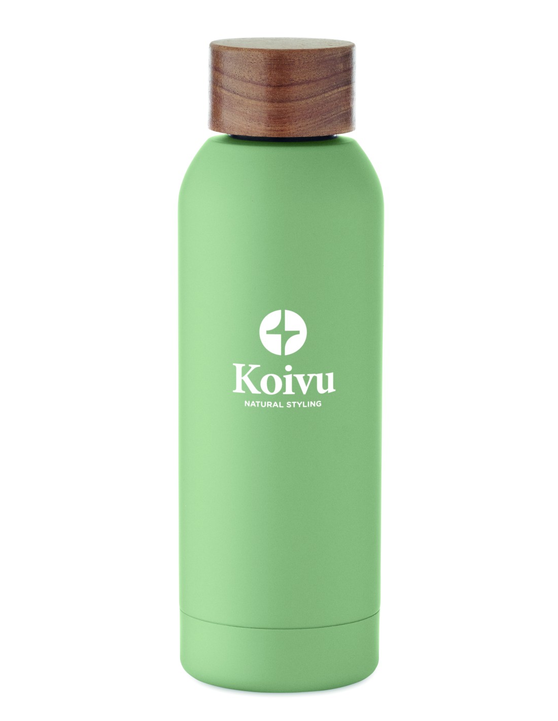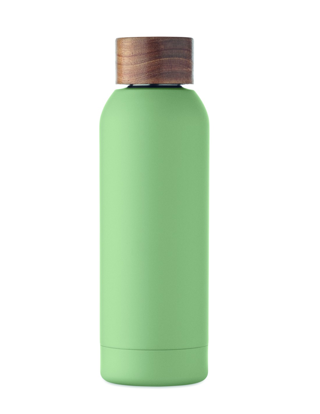 Botella de pared simple de acero inoxidable reciclado al 90% y acero inoxidable al 10% con acabado de caucho y tapa de madera de acacia. Anti fugas…