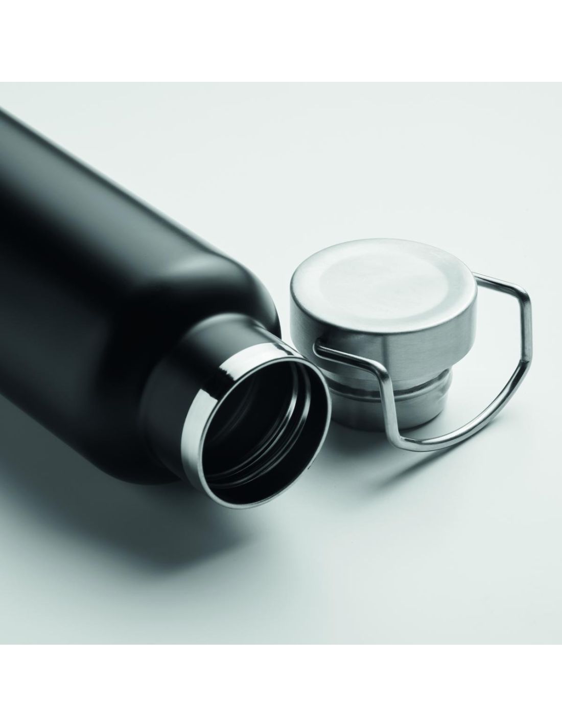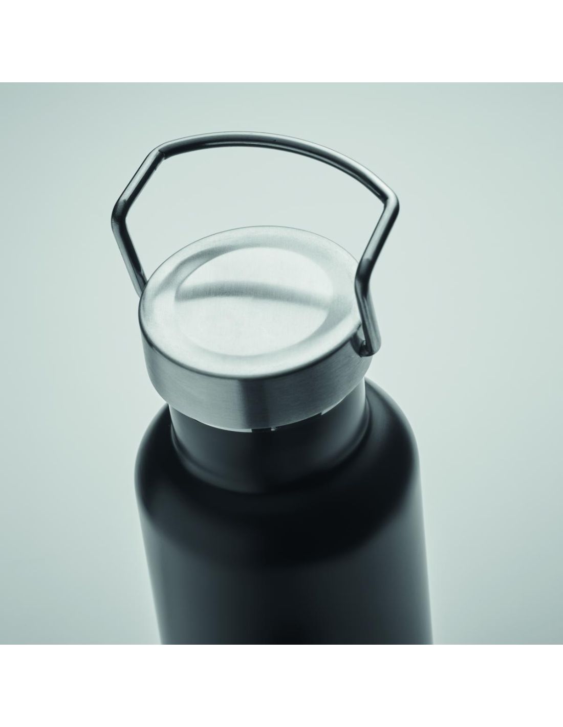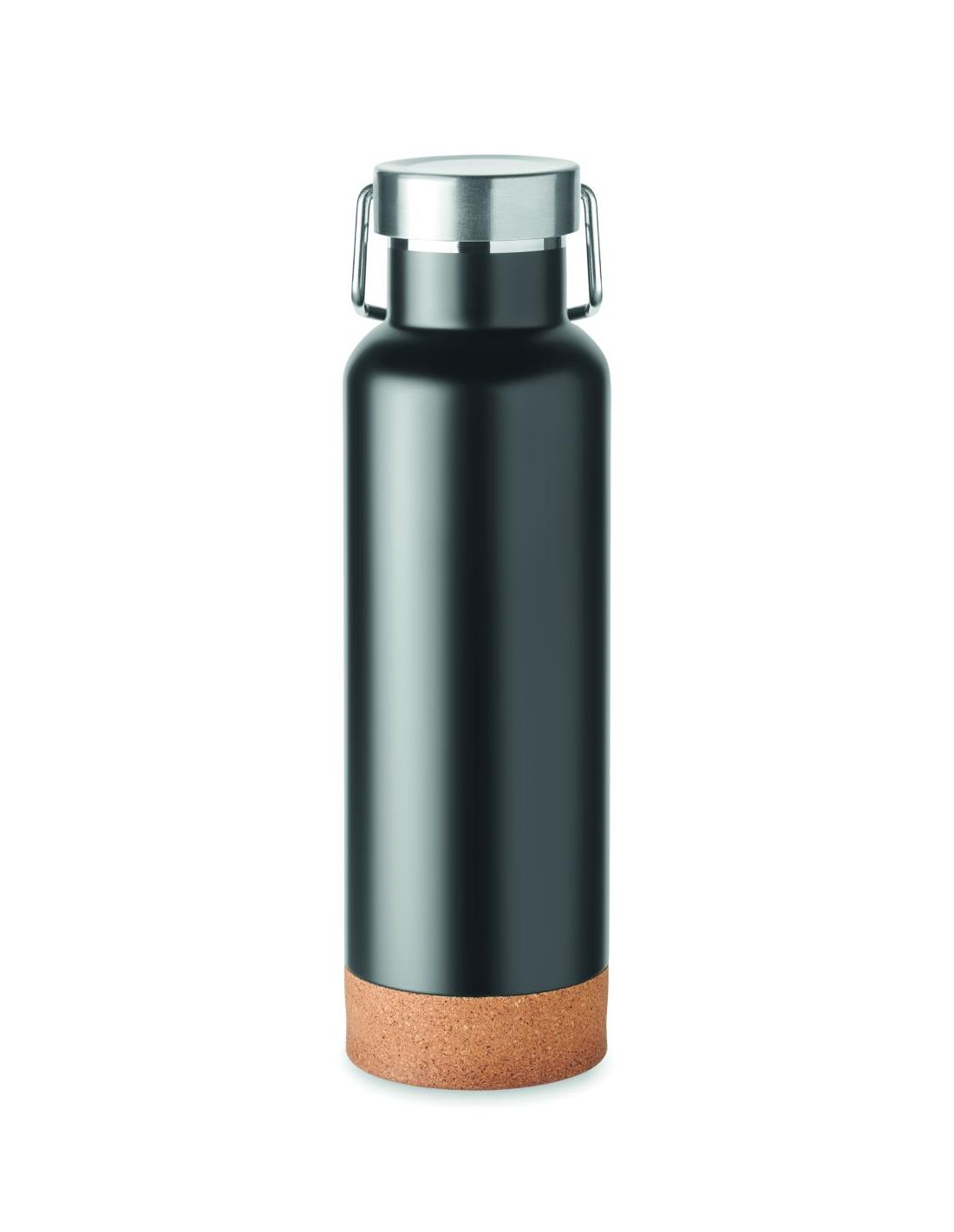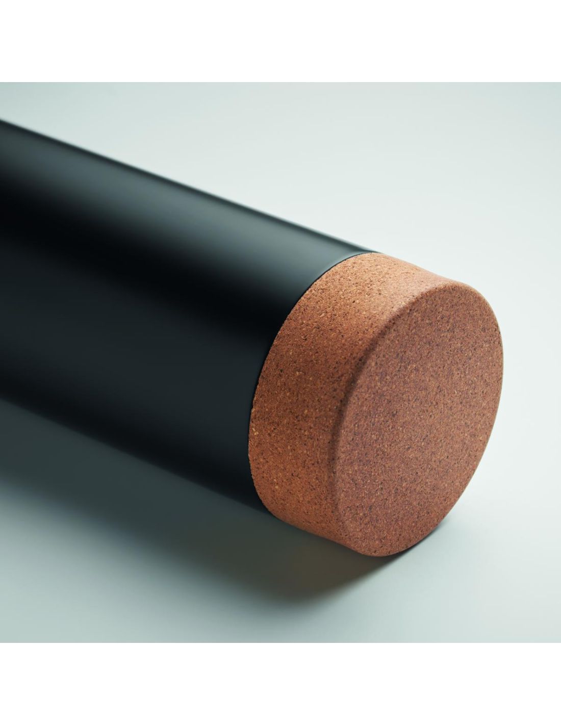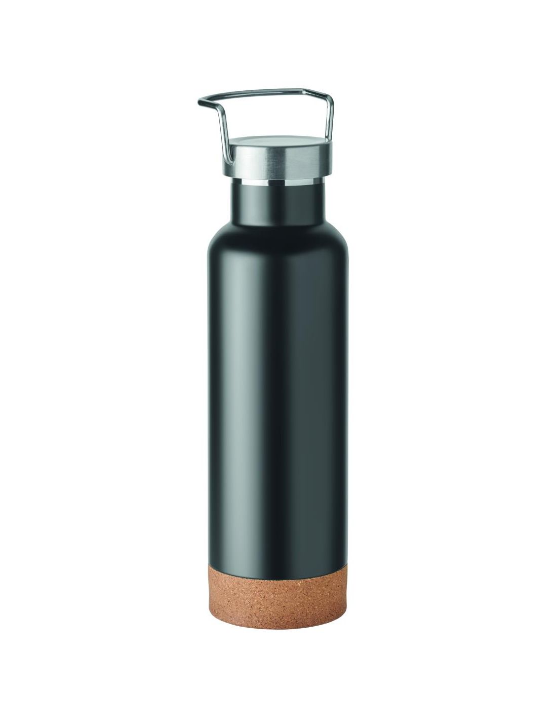 Botella de doble pared aislado al vacío de acero inoxidable reciclado con tapa con asa y base con detalle de corcho. Anti fugas. Capacidad: 500 ml.…