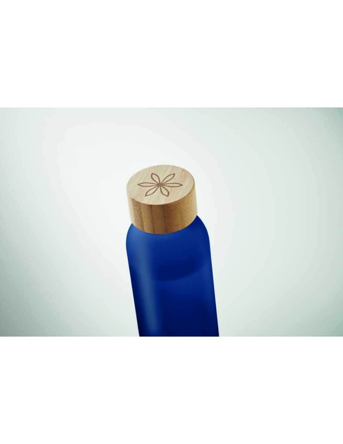 Botella de cristal con acabado esmerilado y tapa de bambú. Anti fugas. Capacidad: 500 ml. El bambú es un material natural, el color del articulo puede variar de unas piezas a otras.