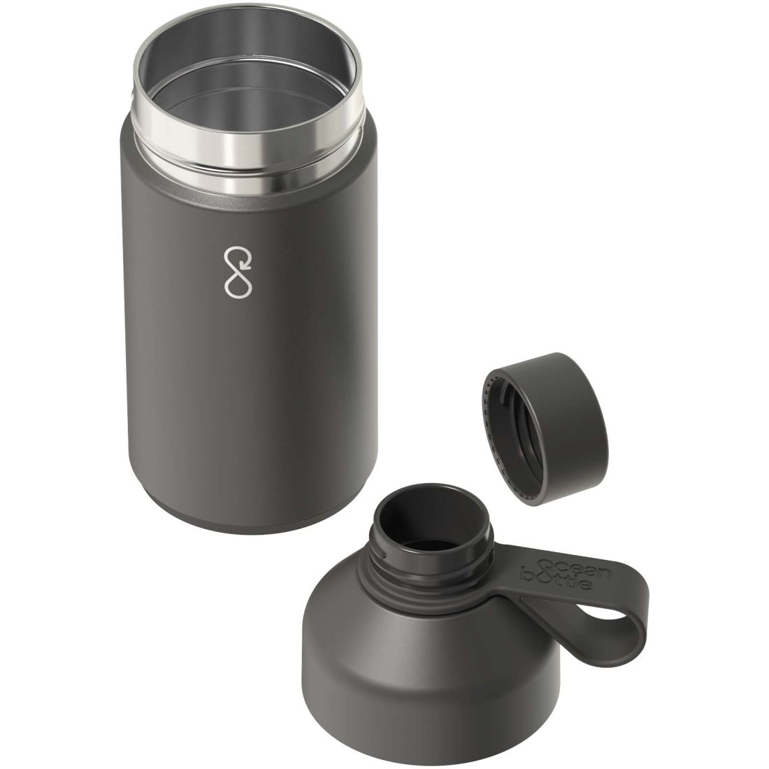 La botella de 750 ml tiene aislamiento al vacío de doble pared para mantener las bebidas calientes durante 6 horas y frías durante 18. Cada es totalmente neutra en carbono y reúne 1000 botellas de plástico para mejorar los medios de vida en las comunidades costeras. Contiene acero inoxidable reciclado y plástico reciclado en riesgo de acabar en el océano. Cuenta con un chip inteligente NFC para recoger más plástico cada vez que se rellena. La doble abertura hace que sea fácil de limpiar y llenar, y la tapa antifugas tiene un asa para transportarla fácilmente. La botella es apta para el lavavajillas y no contiene BPA. Se presenta en una caja de regalo de cartón reciclado de origen responsable.