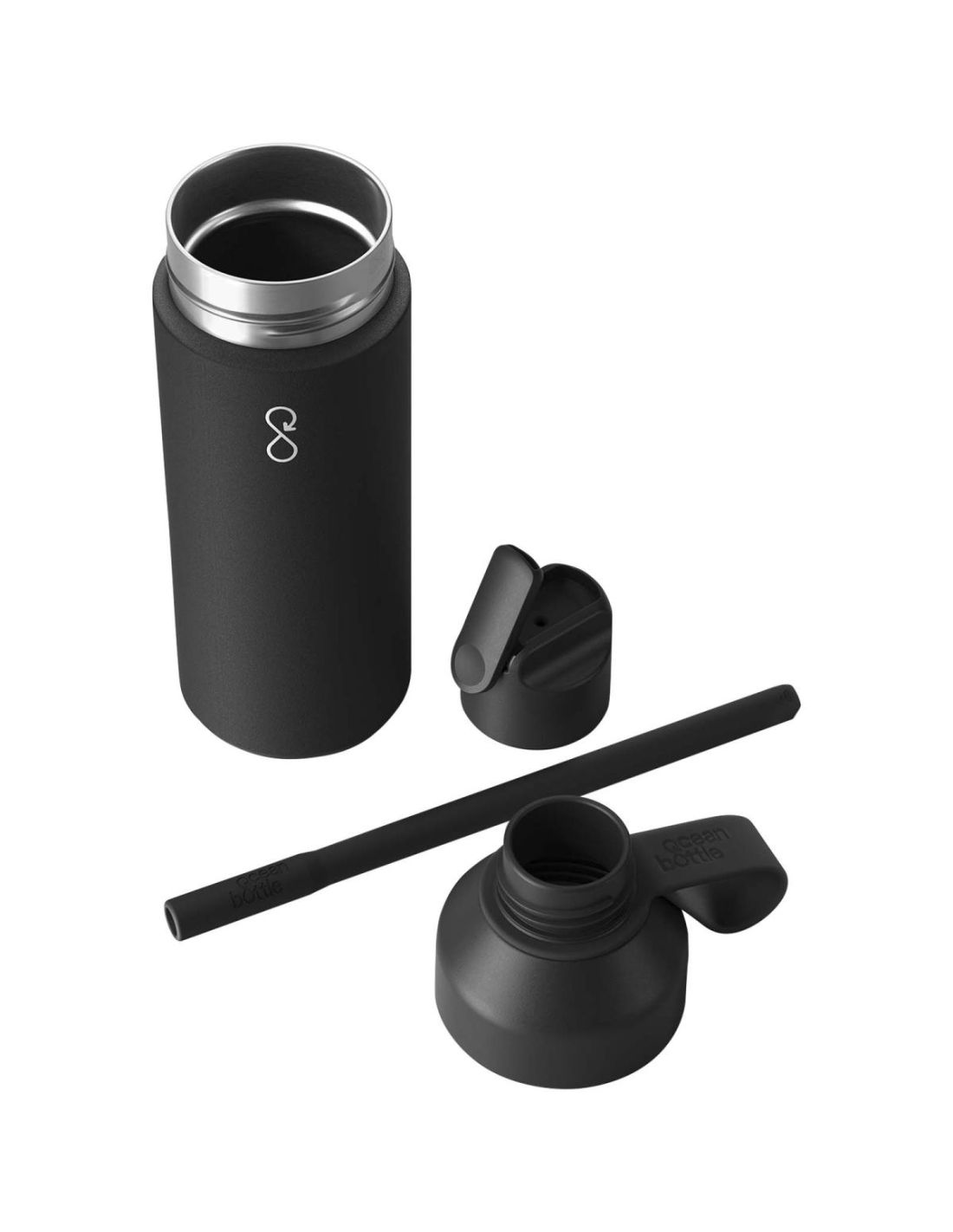 La botella \ de 500 ml tiene aislamiento de doble pared para mantener las bebidas frías hasta dieciocho horas y está diseñada con doble función de apertura, por lo que es perfecta para llevar. La botella tiene una tapa a prueba de fugas que también facilita el llenado, la limpieza y la adición de hielo. La botella \ tiene las mejores características de la botella \ original, pero ofrece un diseño más deportivo que permite beber con una sola mano. Cada \ es totalmente neutra en carbono y sirve para financiar la recogida de 1000 botellas de plástico para mejorar los medios de vida en las comunidades costeras. La botella está fabricada con un 90 % de acero inoxidable reciclado y otros materiales reciclados. Debido a la pajita de silicona, la botella \ solo puede utilizarse para bebidas frías. Se presenta en una caja de regalo de cartón reciclado de origen responsable.