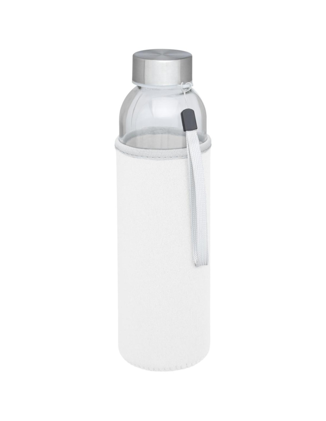 Botella de vidrio de una sola pared con tapa de rosca. La tapa cuenta con una correa para facilitar el transporte, así como una funda de neopreno. Recomendado para bebidas frías. No apto para...