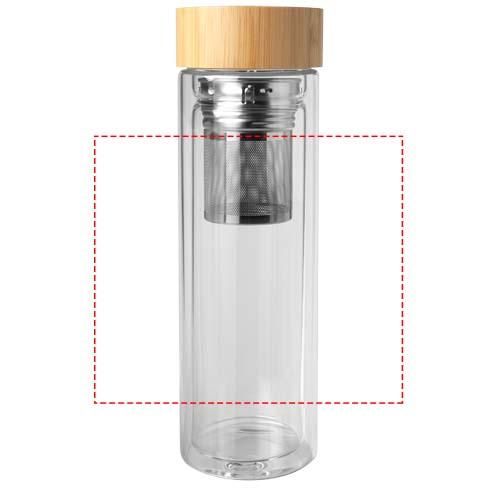 Botella de vidrio de borsilicato de 400 ml con infusor y tapa de bambú Personalizada 6100810