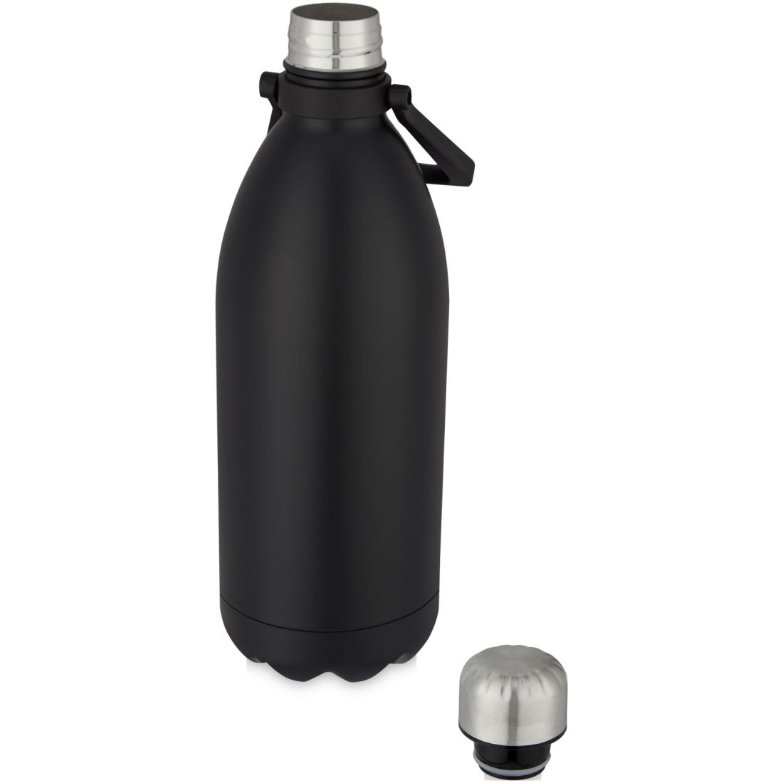 Botella de acero inoxidable con aislamiento al vacío extragrande y un diseño icónico con una asa cómoda para facilitar su transporte. No contiene BPA y se ha probado y homologado según la legislación alemana sobre seguridad alimentaria (LFGB). Contenido de ftalatos probado y homologado según la normativa REACH. Tiene una capacidad de 1,5 L. Se recomienda lavarla a mano. Se presenta en una caja de regalo de cartón reciclado. Mantiene las bebidas calientes durante 12 horas y frías durante 48 horas.