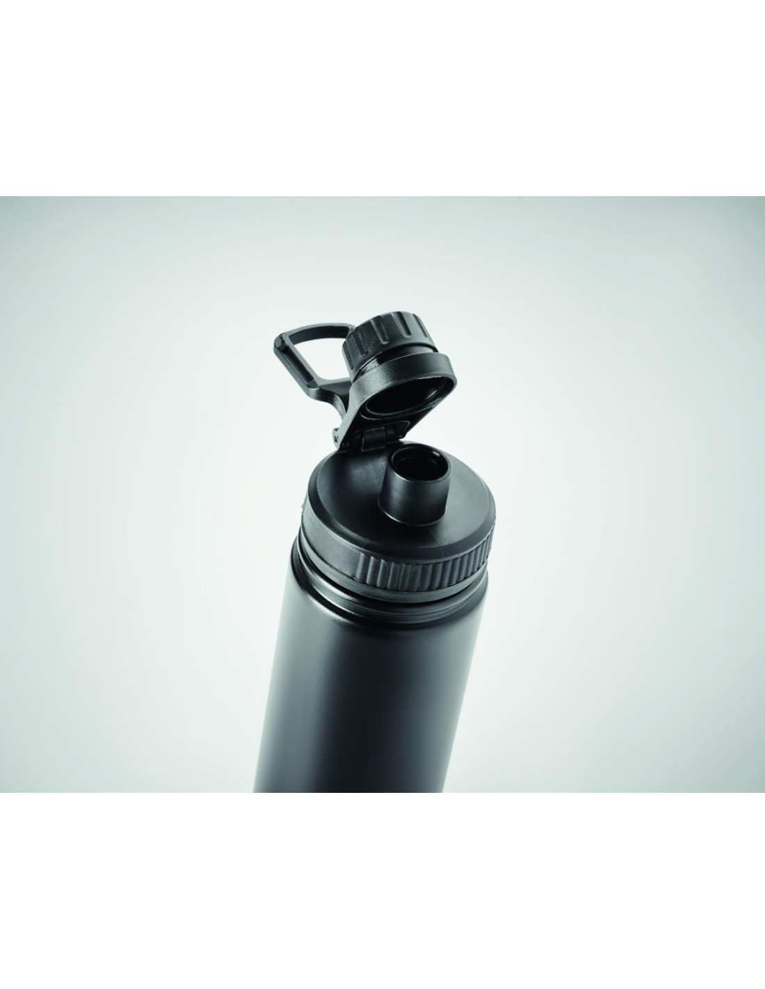 Botella de acero inoxidable de doble pared aislada al vacío, con tapón para beber y asa de transporte. Capacidad: 500 ml.