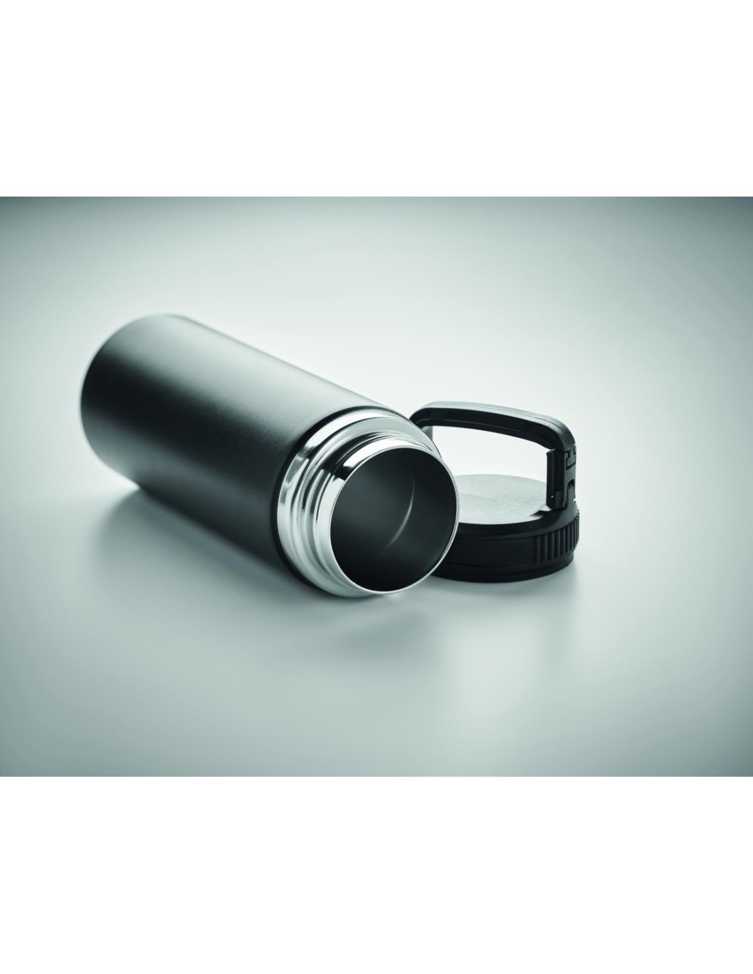 Botella de acero inoxidable de doble pared aislada al vacío con asa en la tapa. Capacidad: 500 ml.
