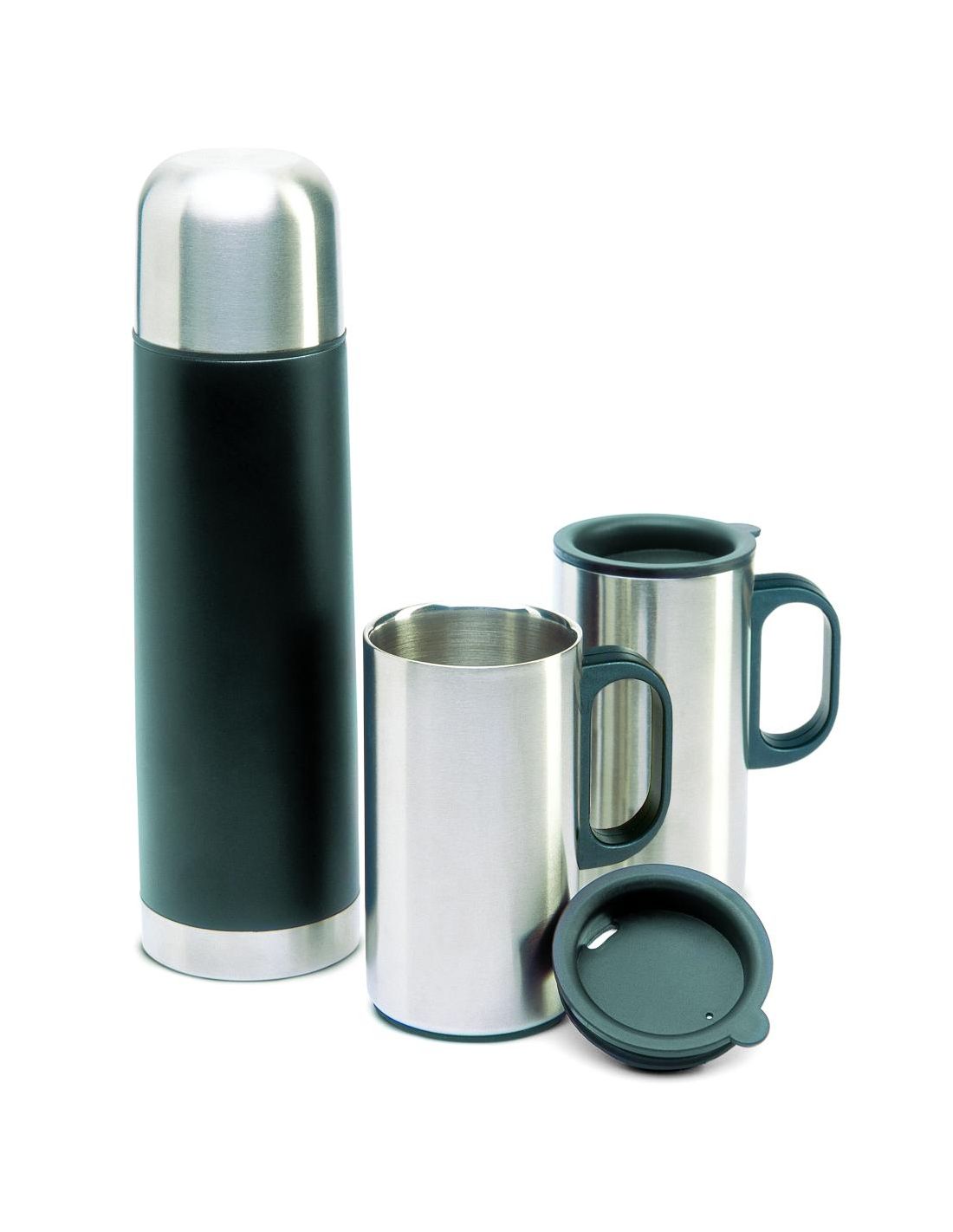 Termo de acero inoxidable de doble capa y 2 piezas de tazas de 220 ml. Capacidad: 500 ml.
