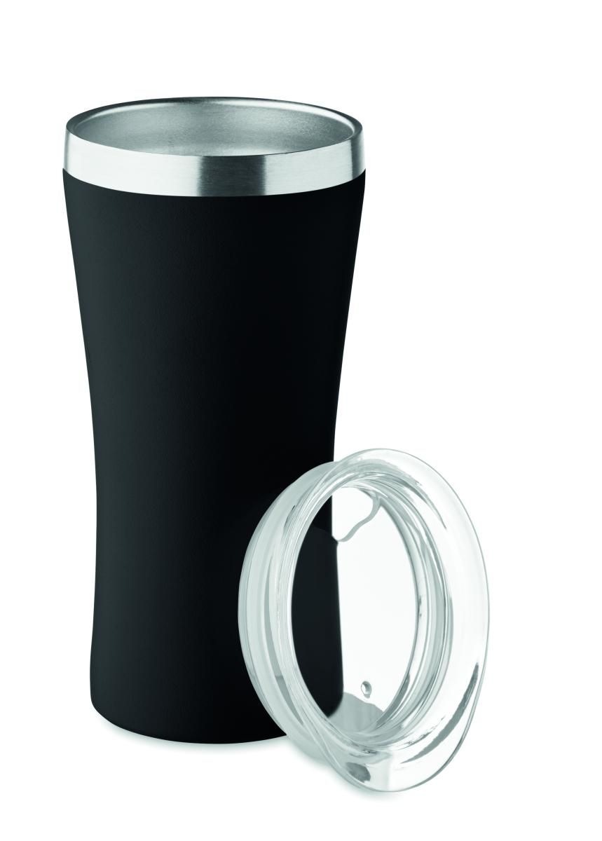 Vaso pequeño de doble pared con aislamiento al vacío de acero inoxidable reciclado (90% de acero inoxidable reciclado y 10% de acero inoxidable) y tapa con orificio para beber de PP transparente. Capacidad: 160 ml.