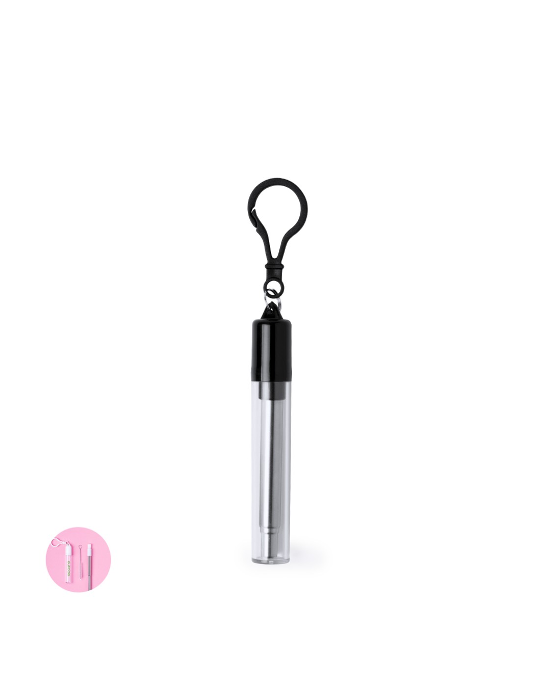 Pajita reutilizable y extensible en acero inoxidable, con boquilla de silicona. Con accesorio limpiador incluido y presentada en estuche transparente...