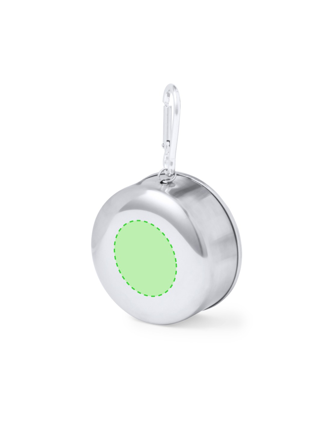 Original vaso plegable para emergencias fabricado en acero inox. De 220ml de capacidad y con mosquetón metálico de transporte.
