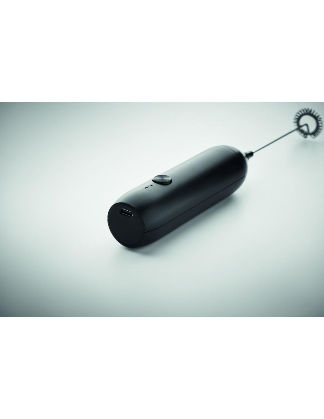 Espumador de leche eléctrico de mano en ABS con acabado mate. Batería integrada de 500 mAh de capacidad. Recargable por USB Type-C (cable incluido). Velocidad: 10 000 rpm.