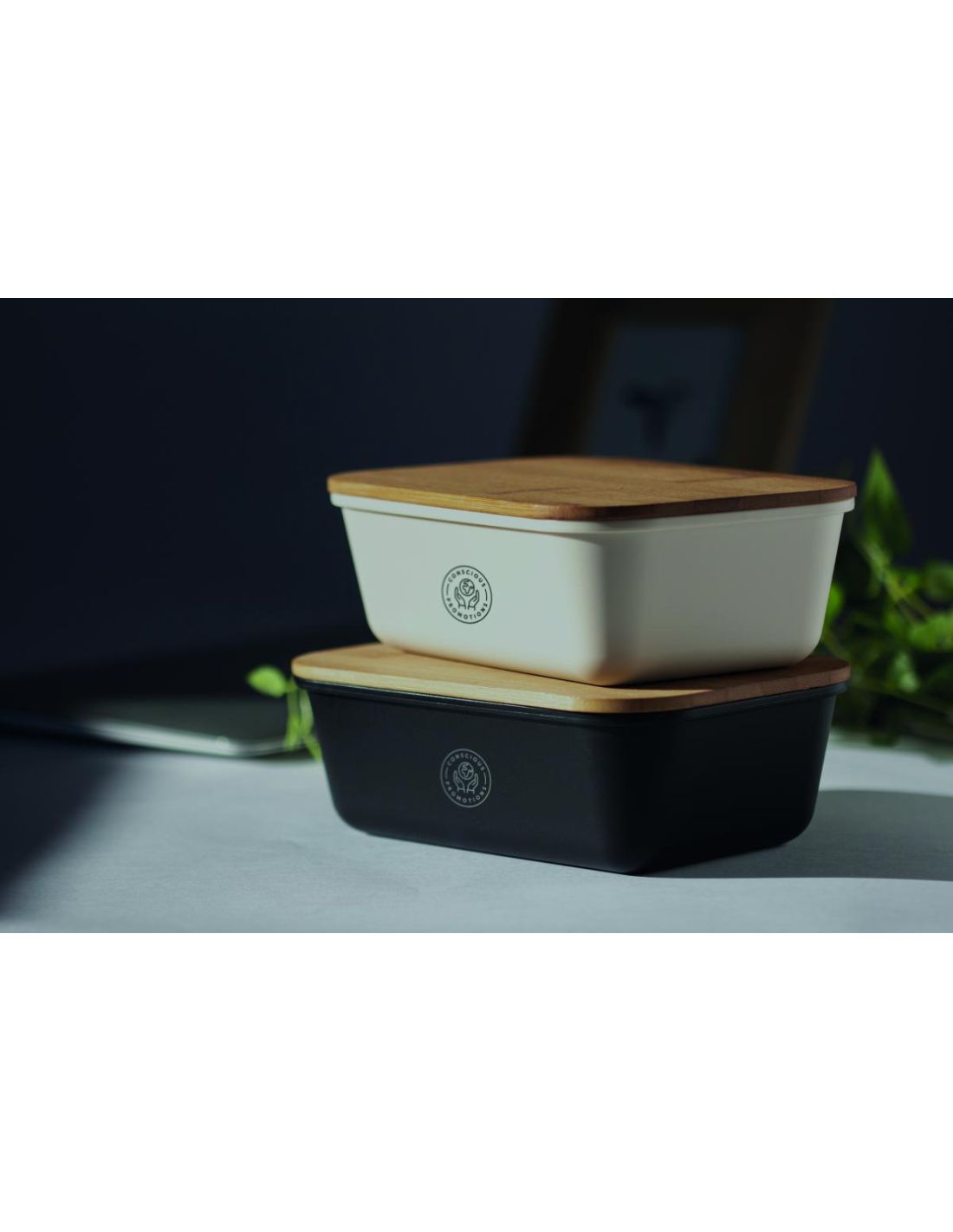 Fiambrera o sandwichera de PP con tapa de bambú. El bambú es material natural, el color del articulo puede variar.