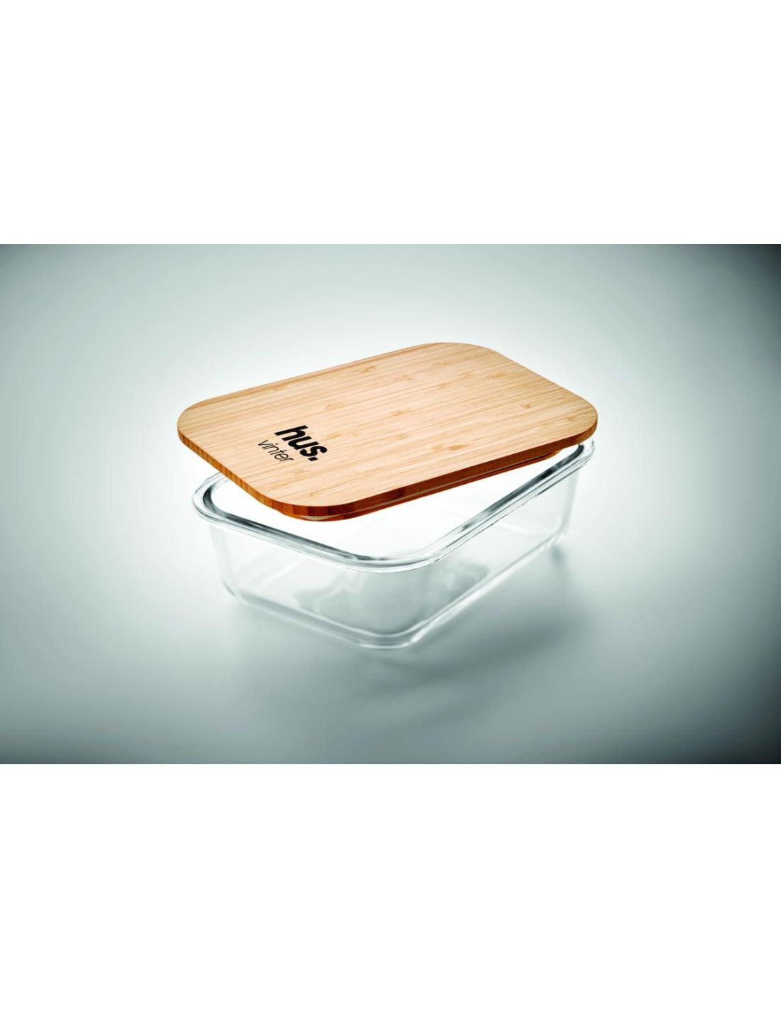 Fiambrera vidrio y tapa bambú Personalizada 7MO9962