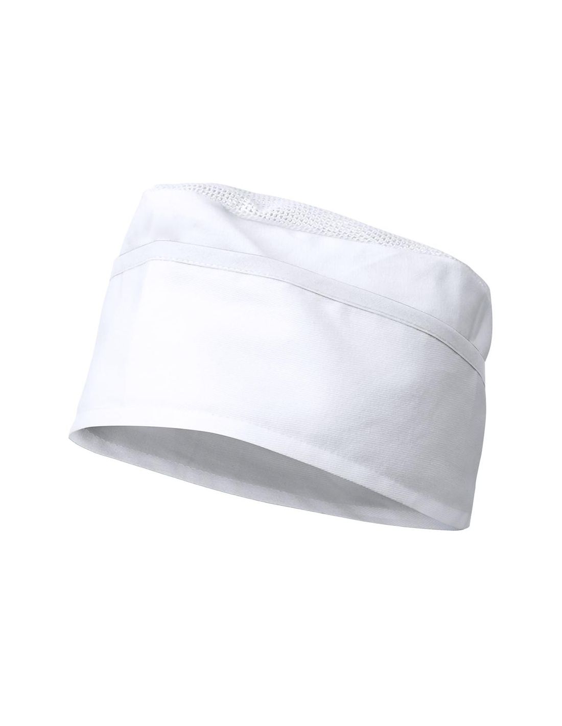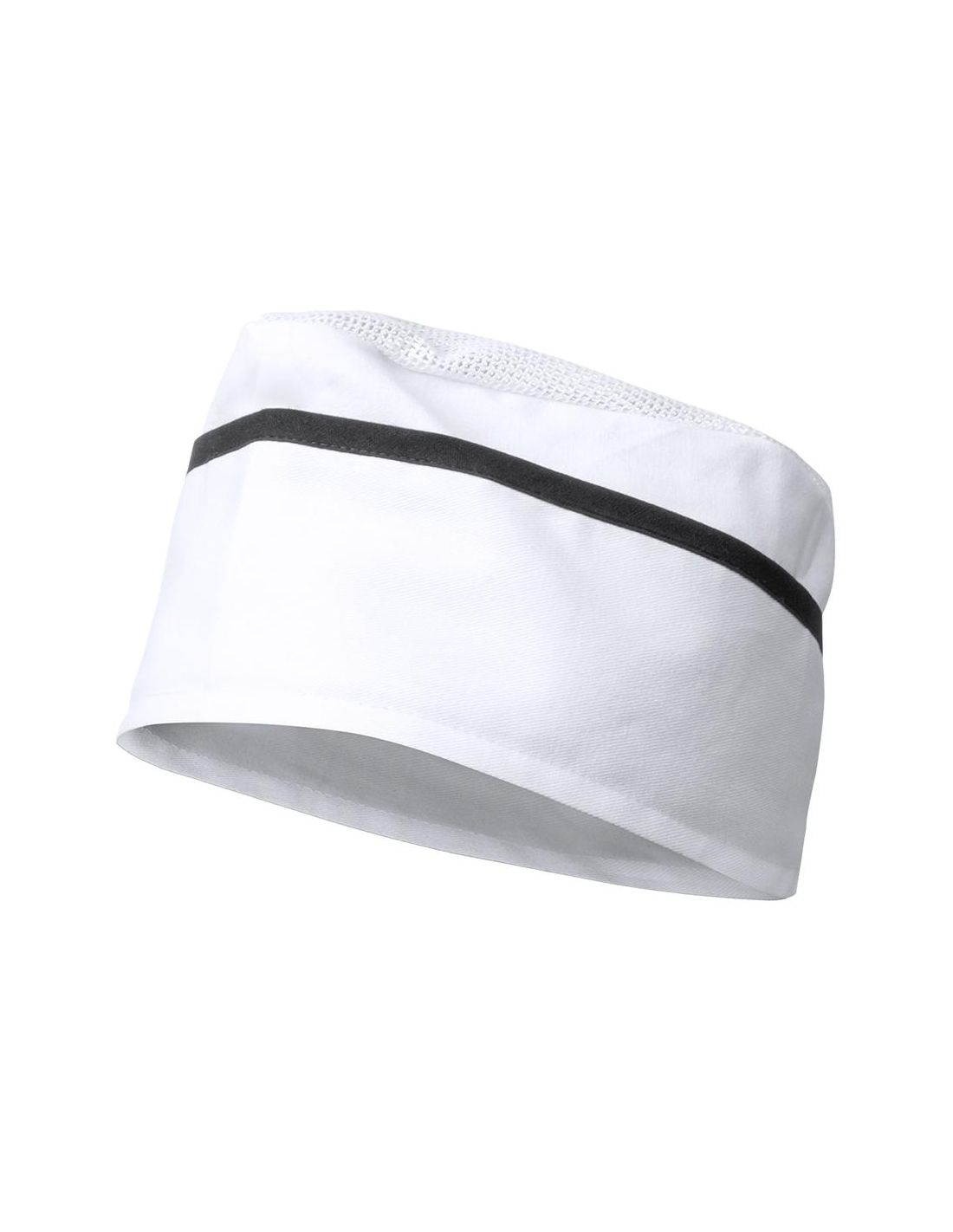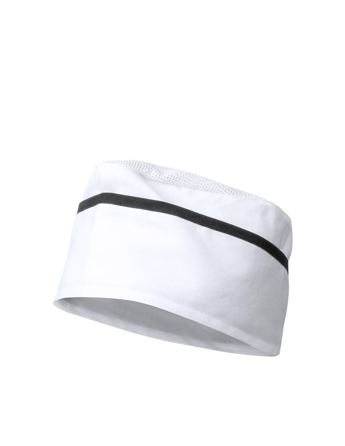 Gorro de cocina en y cómodo material TC -combinado de algodón y poliéster- en alegre combinación de color blanco con accesorios en vivos colores.