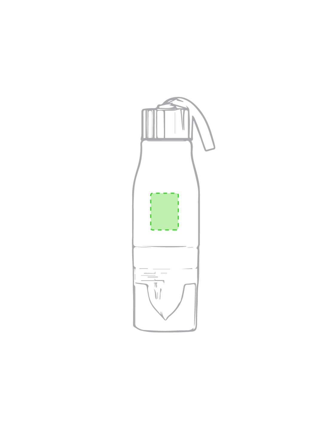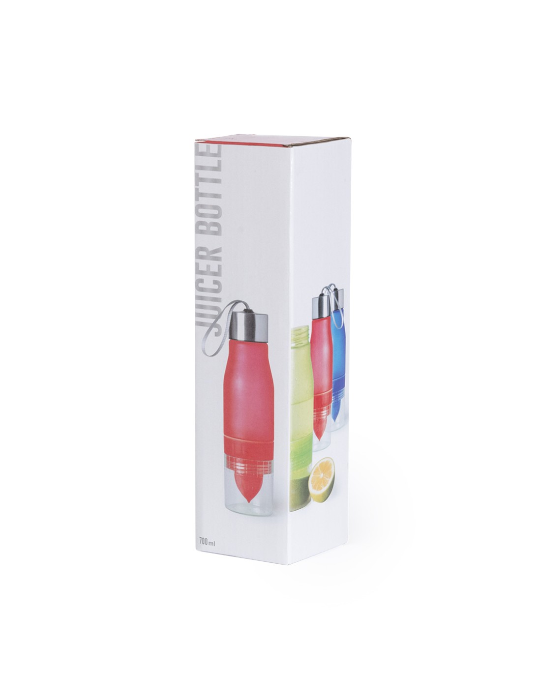 Original bidón de 700ml de capacidad en material tritán resistente al calor y libre de BPA. Incluye compartimento en base con exprimidor de cítricos para dar sabor al agua. Con dosificador, tapón a rosca y cinta de transporte. Disponible en variada gama de colores y presentado en caja individual.