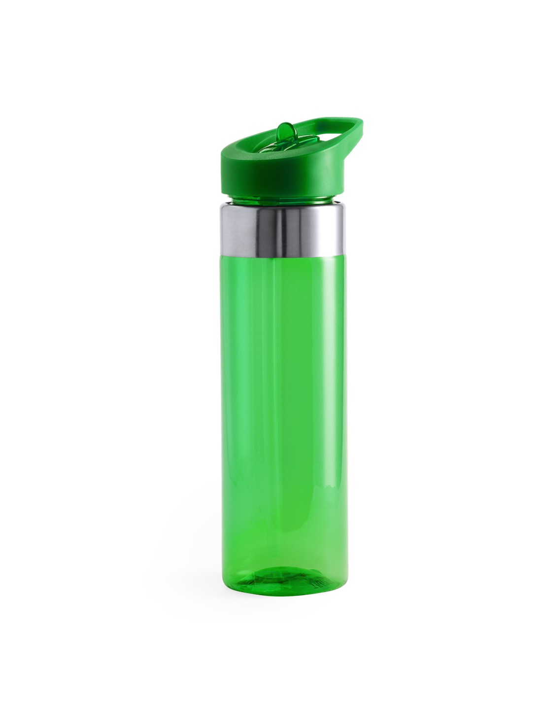 Bidón en alta calidad y de gran capacidad -650 ml- en material tritán resistente al calor y libre de BPA. Con anilla de acero inoxidable y papón dosificador a rosca, con asa integrada a juego. Disponible en variada gama de colores transparentes.