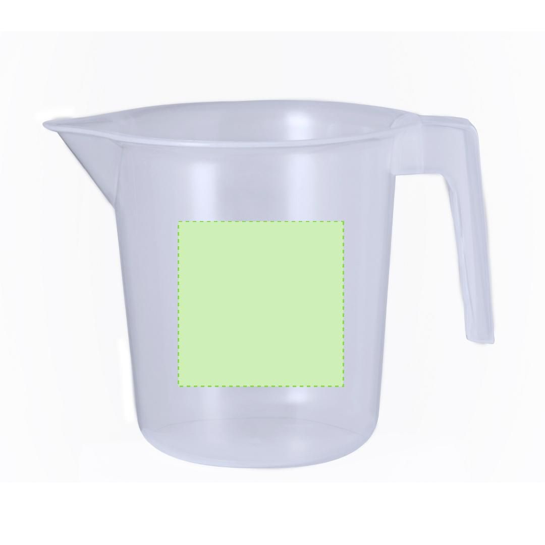 Jarra medidora de 1L fabricada en resistente PP transparente con asa. Con medidor lateral en tramos de 50 ml y vertedor en el borde para evitar derrames.