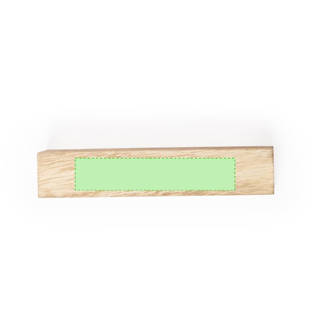 Portagráfica con base fabricada en resistente madera. Incluye práctica pizarra para escribir por ambos lados de la misma y viene presentada en caja individual de diseño kraft.