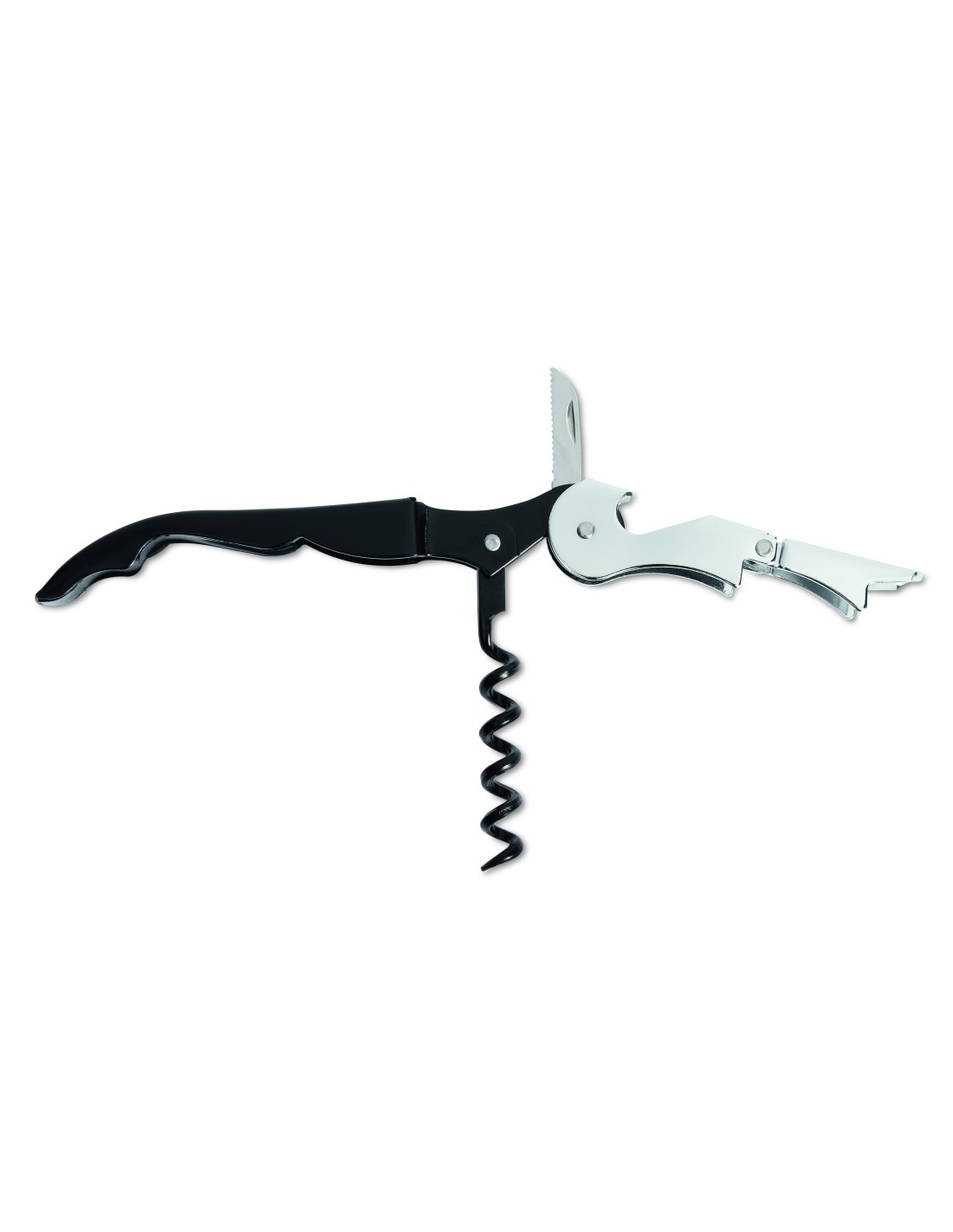 Abrebotellas de dos tiempos para camarero de acero inoxidable y cuchilla cortacapsulas.