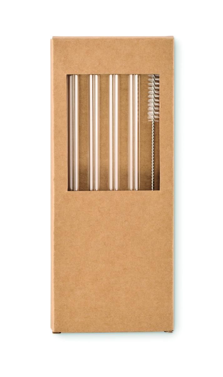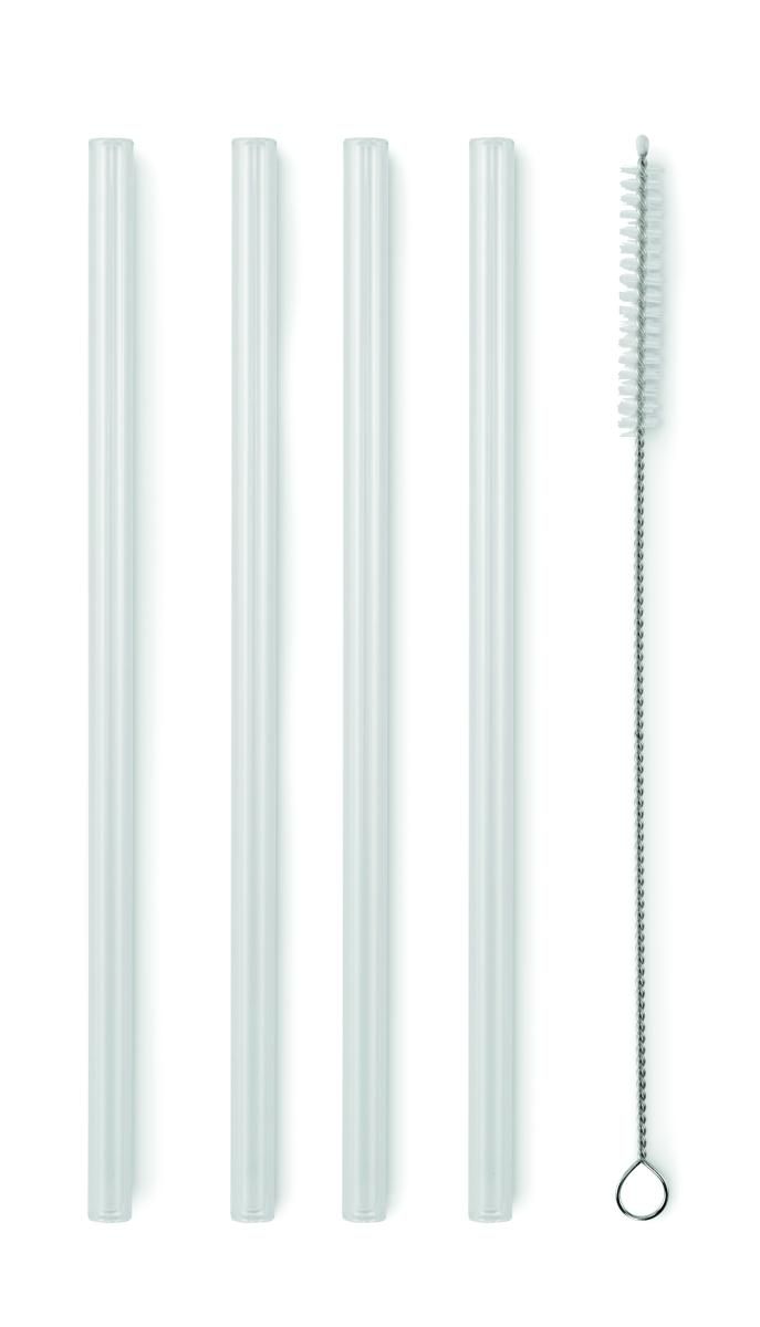 Set de 4 pajitas reutilizables de vidrio de borosilicato de alta calidad con 1 cepillo de limpieza.