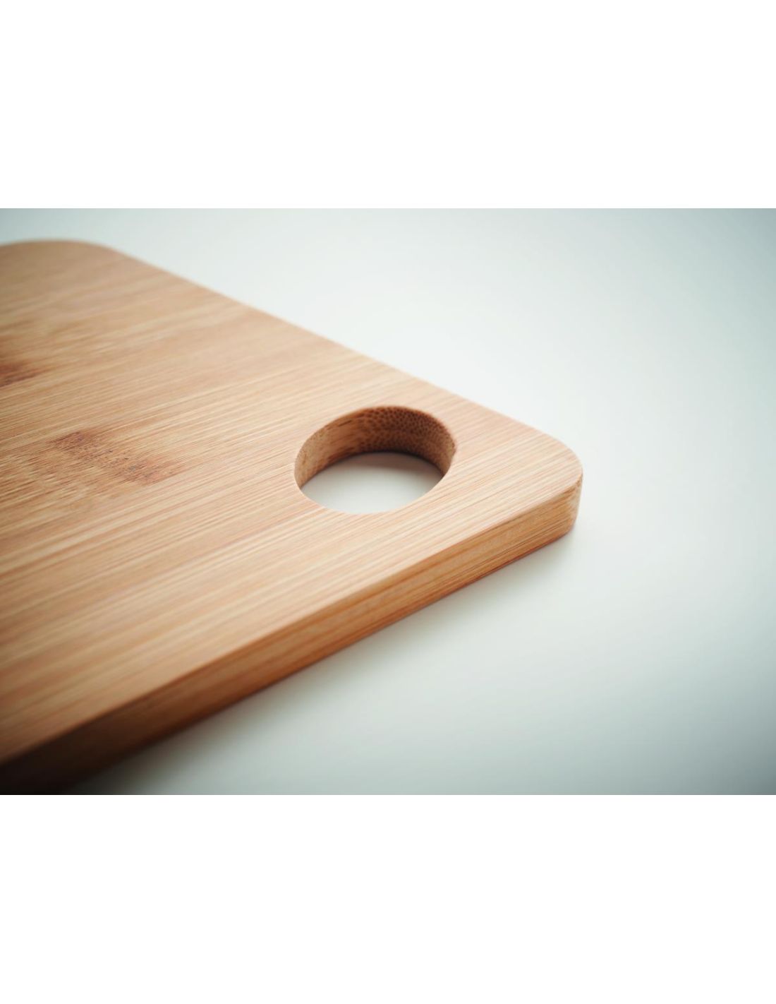 Tabla de cortar en madera de bambú con orificio para colgar. El bambú es material natural, el color del articulo puede variar.