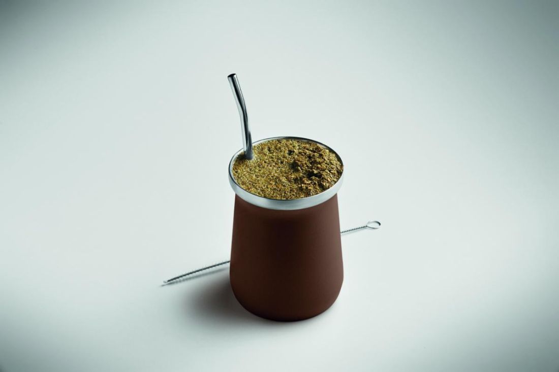 Vaso de yerba mate de doble pared de acero inoxidable reciclado (90% de acero inox.reciclado y 10% de acero inox). Incluye pajilla bombilla de acero inox. y cepillo de limpieza. Capacidad : 240 ml.