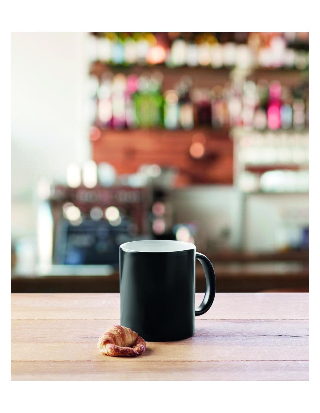 Taza de cerámica de 300 ml con recubrimiento especial para sublimación. La taza cambia a su impresión personalizada al verter (al menos) 50 ° C de líquido en la taza. Embalaje individual en caja de cartón blanca.
