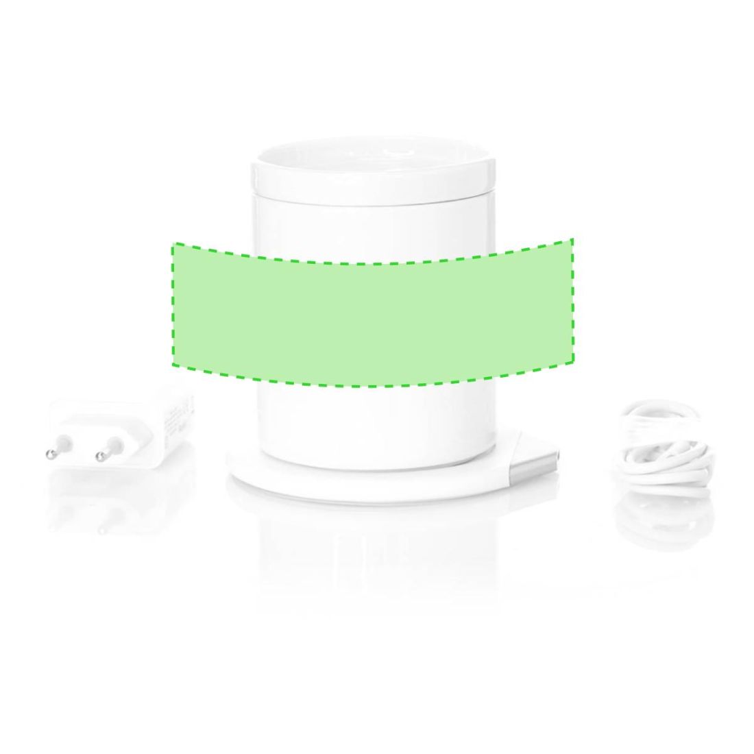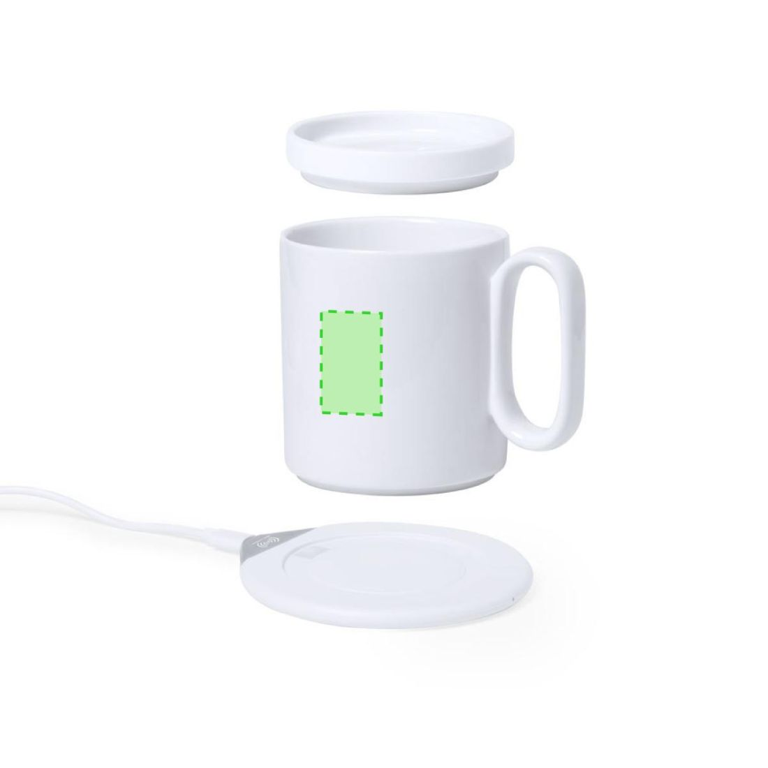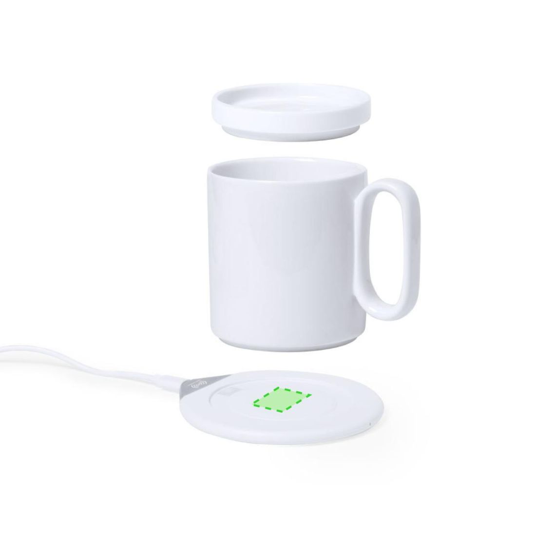 Calentador de tazas con cargador inalámbrico integrado de carga rápida -10W-. Con taza de cerámica de 350 ml, especialmente diseñada para calentar y mantener la temperatura de la bebida, con tapa a juego. Incluye cargador de pared y cable de carga Tipo C. Set presentado en atractiva caja de diseño.
