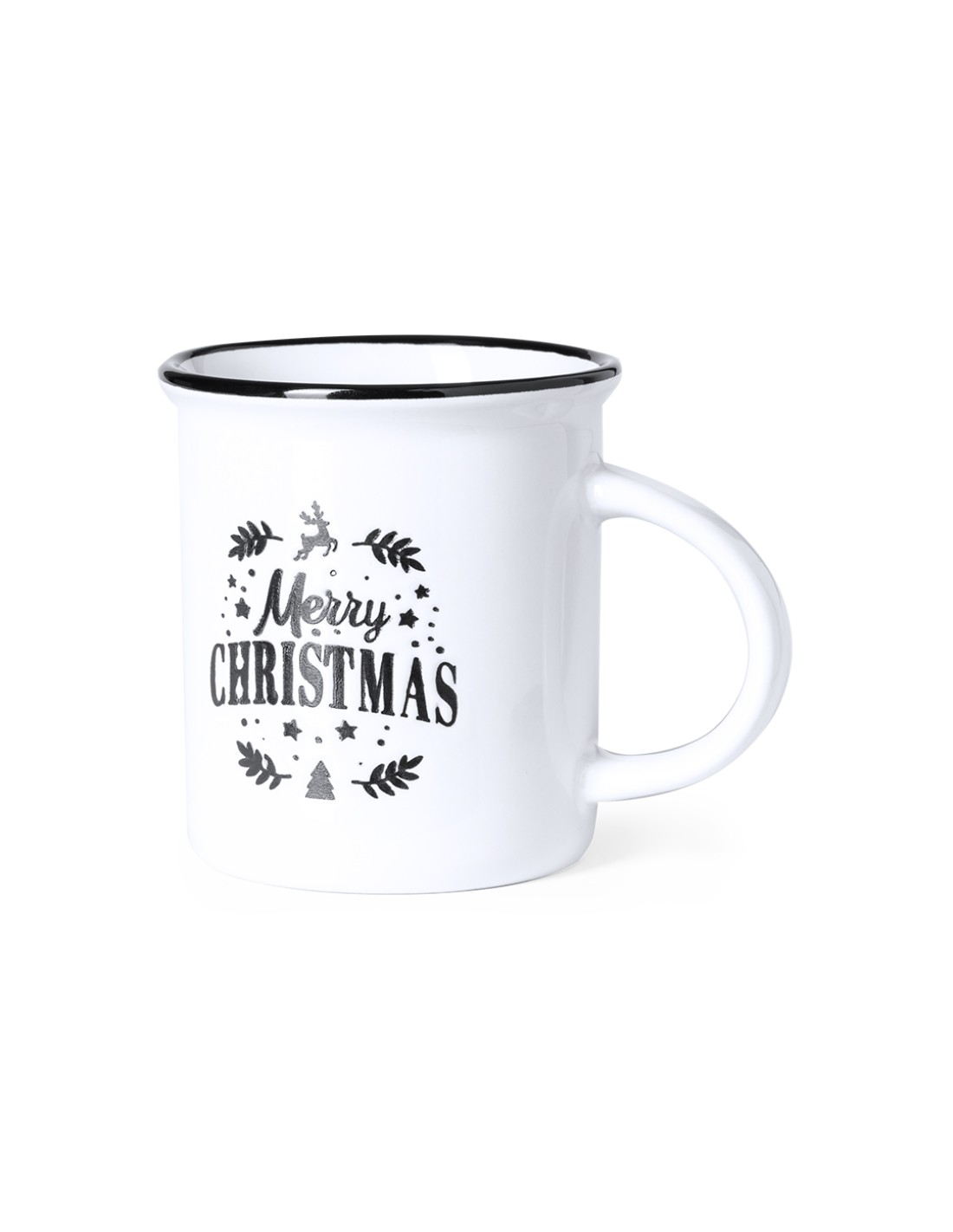 Taza de cerámica con diseño navideño vintage y 320 ml de capacidad, apta para microondas. Presentada en atractiva caja individual kraft.