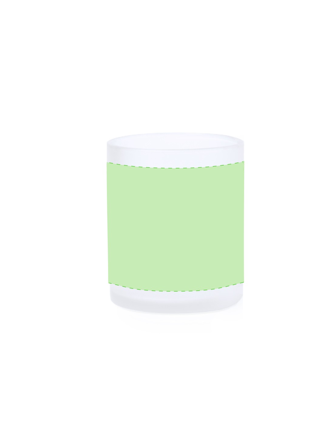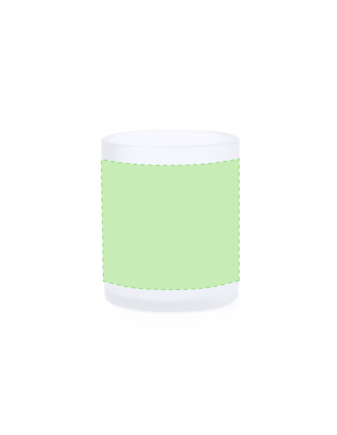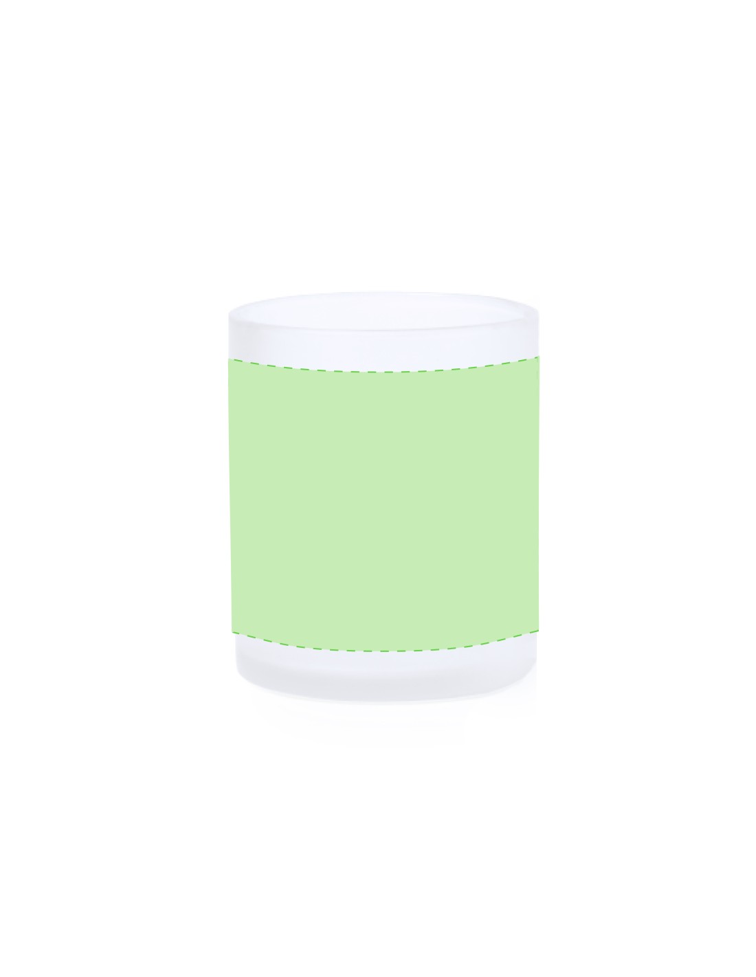 Taza de cristal de 350ml de capacidad, de acabado translúcido y especialmente diseñada para marcaje en sublimación. Presentada en caja individual de diseño kraft.