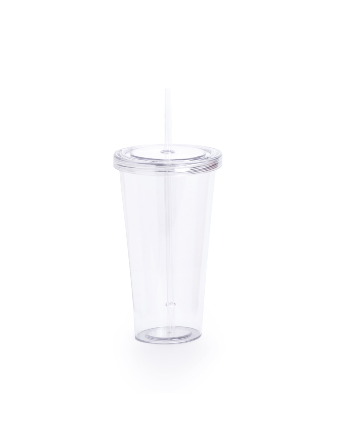 Divertido vaso de PS de 750ml de capacidad con cuerpo transparente en variada gama de vivos colores. Con tapa a rosca y pajita a juego.Disponible...