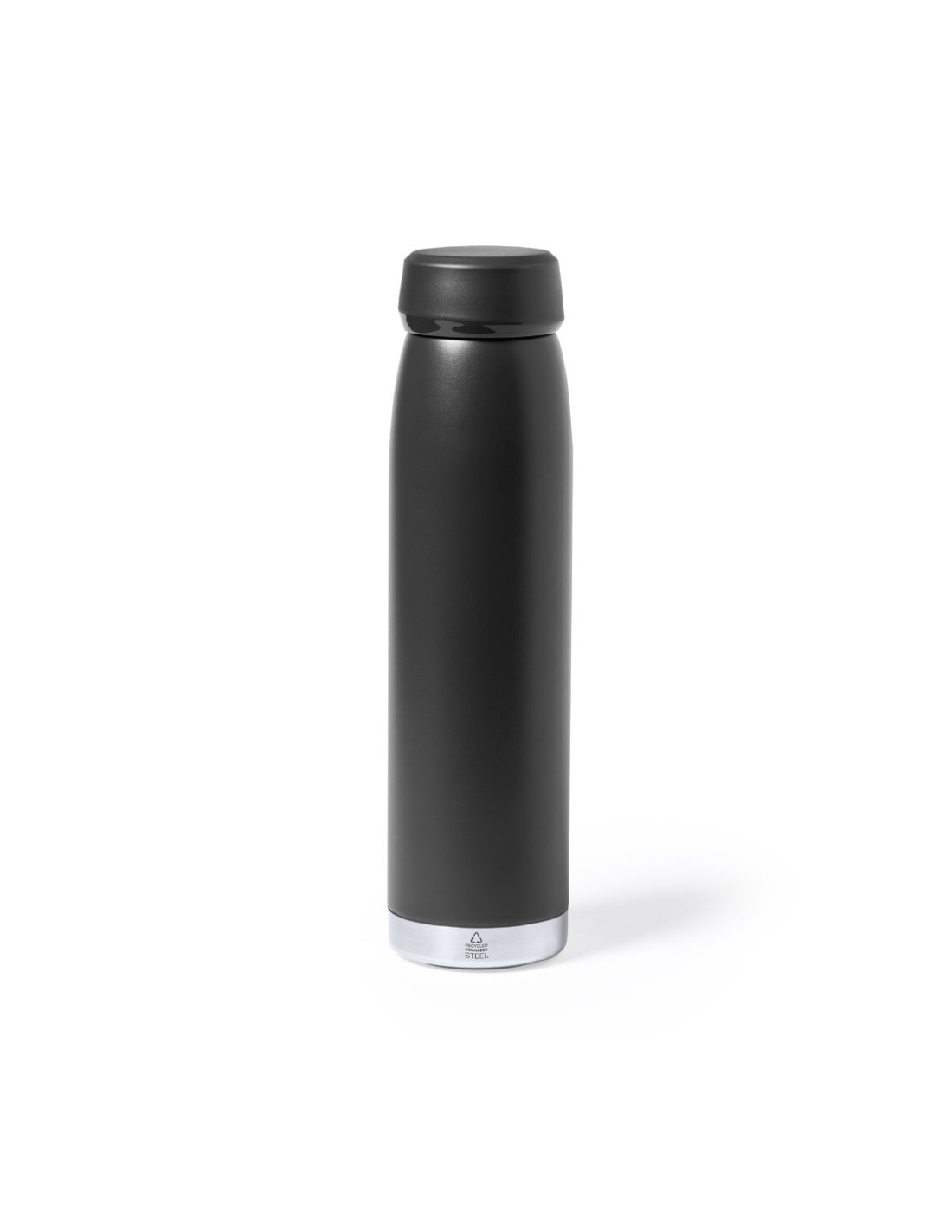 Bidón térmico de 380 ml de capacidad, fabricado en acero inox reciclado de doble pared, con tapón a rosca a juego y base en plata. Disponible en variada gama de colores satinados, libre de BPA y presentado en caja individual de diseño kraft. El acero es uno de los materiales más demandados y que puede encontrarse casi en todas partes, desde productos de uso diario a grandes construcciones. Con innumerables propiedades, entre las que cabe destacar la durabilidad y su alto grado de reutilización, convirtiéndolo en una alternativa muy valorada en soluciones de sostenibilidad. Debidamente tratado, permite obtener nuevos recursos de infinita utilización.