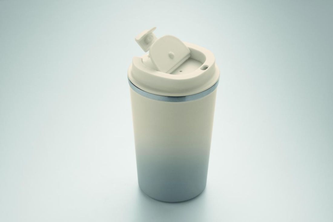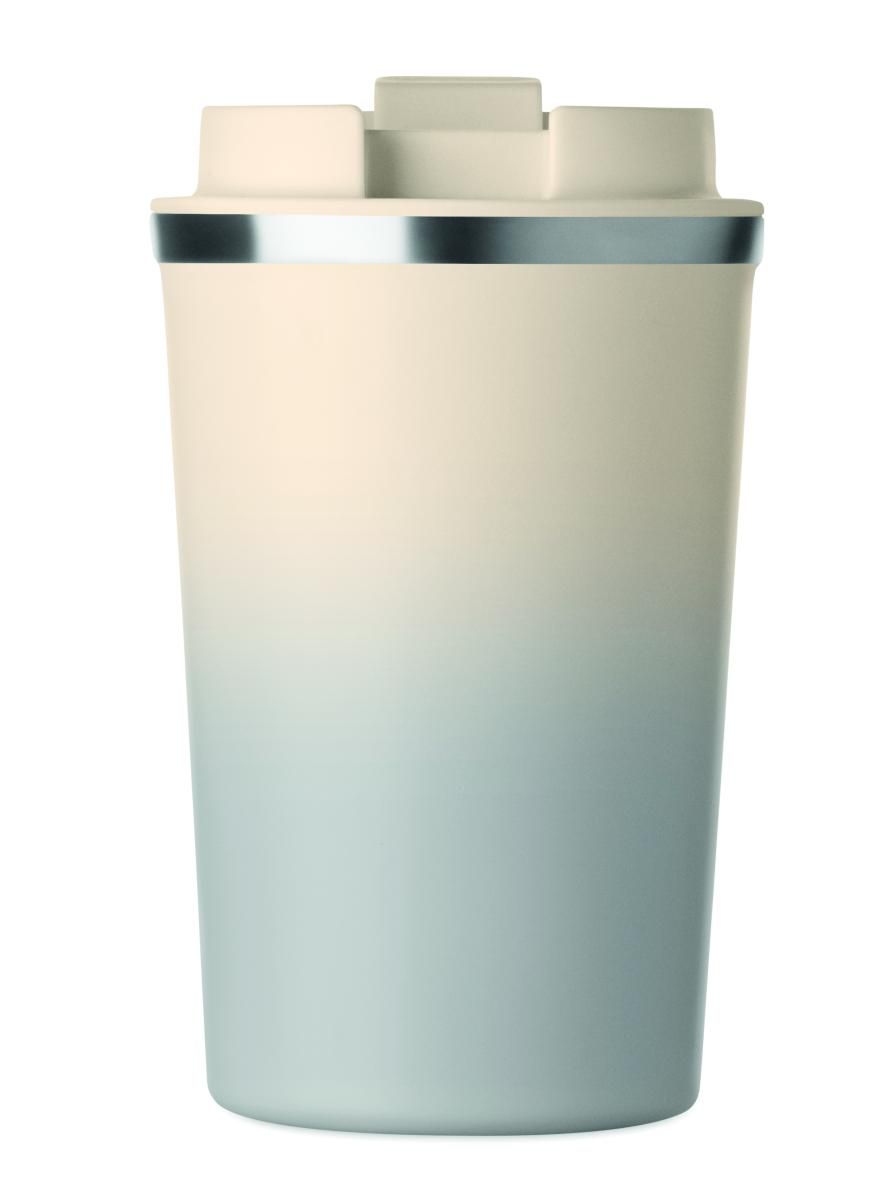 Vaso de acero inoxidable reciclado de doble pared (90% de acero inoxidable reciclado y 10% de acero inoxidable) con tapa de PP. Capacidad: 350 ml. …
