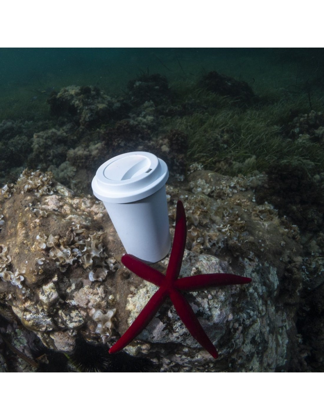 Vaso de linea nature, fabricado en PLA 100% compostable. 450ml de capacidad, de acabado sólido y con tapa dosificador de seguridad en mismo material,...